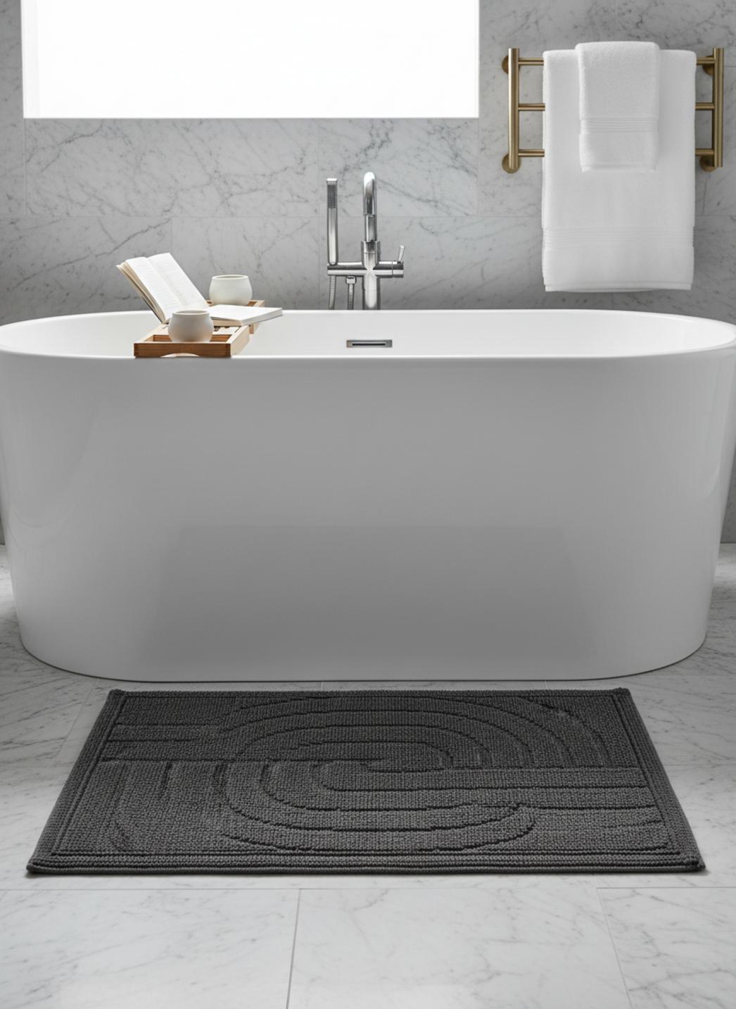 Tapis géométrique spirale de bain noir en coton 50x80 cm