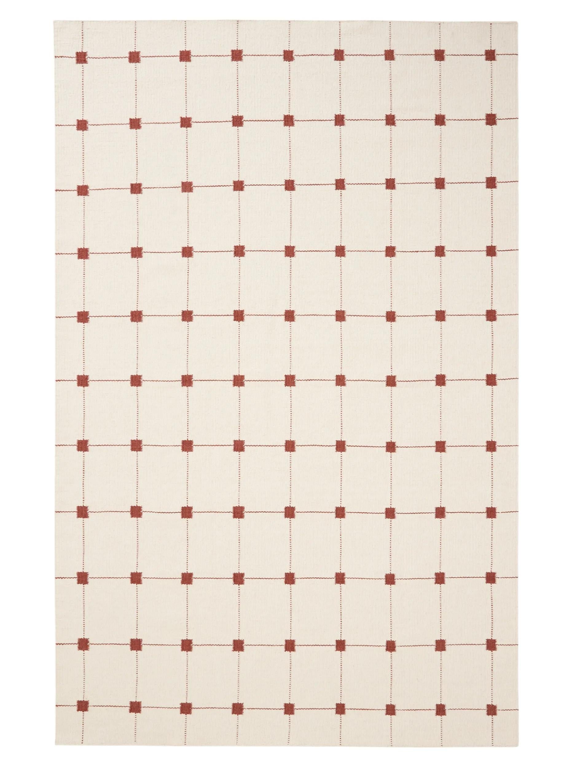 Tapis géométrique style minimaliste blanc et rouge en laine 160x230 cm