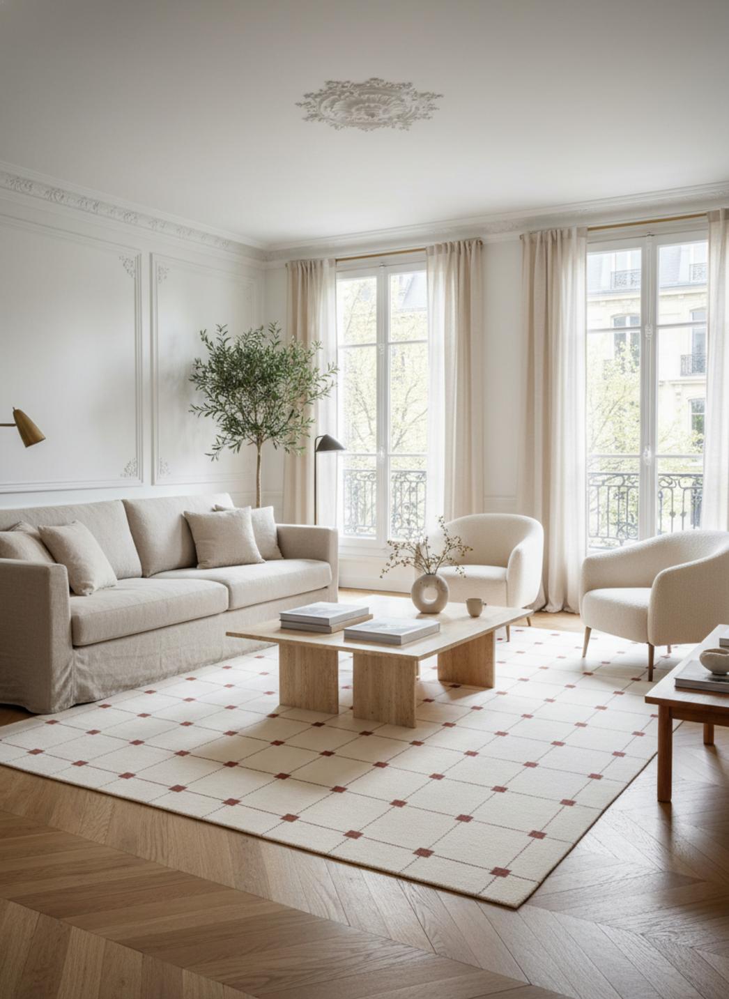 Le style minimaliste ici n’appauvrit pas, il clarifie. L’usage maîtrisé du vide autour des motifs laisse la composition respirer et invite à la contemplation. L’échelle des formes module l’espace sans le surcharger, offrant à la fois dynamisme et sérénité. C’est un tapis qui dialogue avec la lumière et amplifie une atmosphère scandinave ou contemporaine selon l’ameublement.
