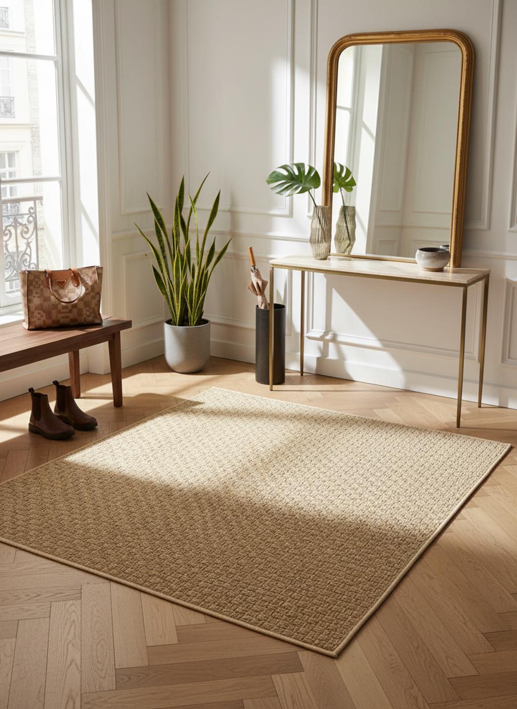 Pour éviter l'aplatissement des fibres aux endroits de fort passage, n'hésitez pas à pivoter votre tapis de 180° une à deux fois par an.