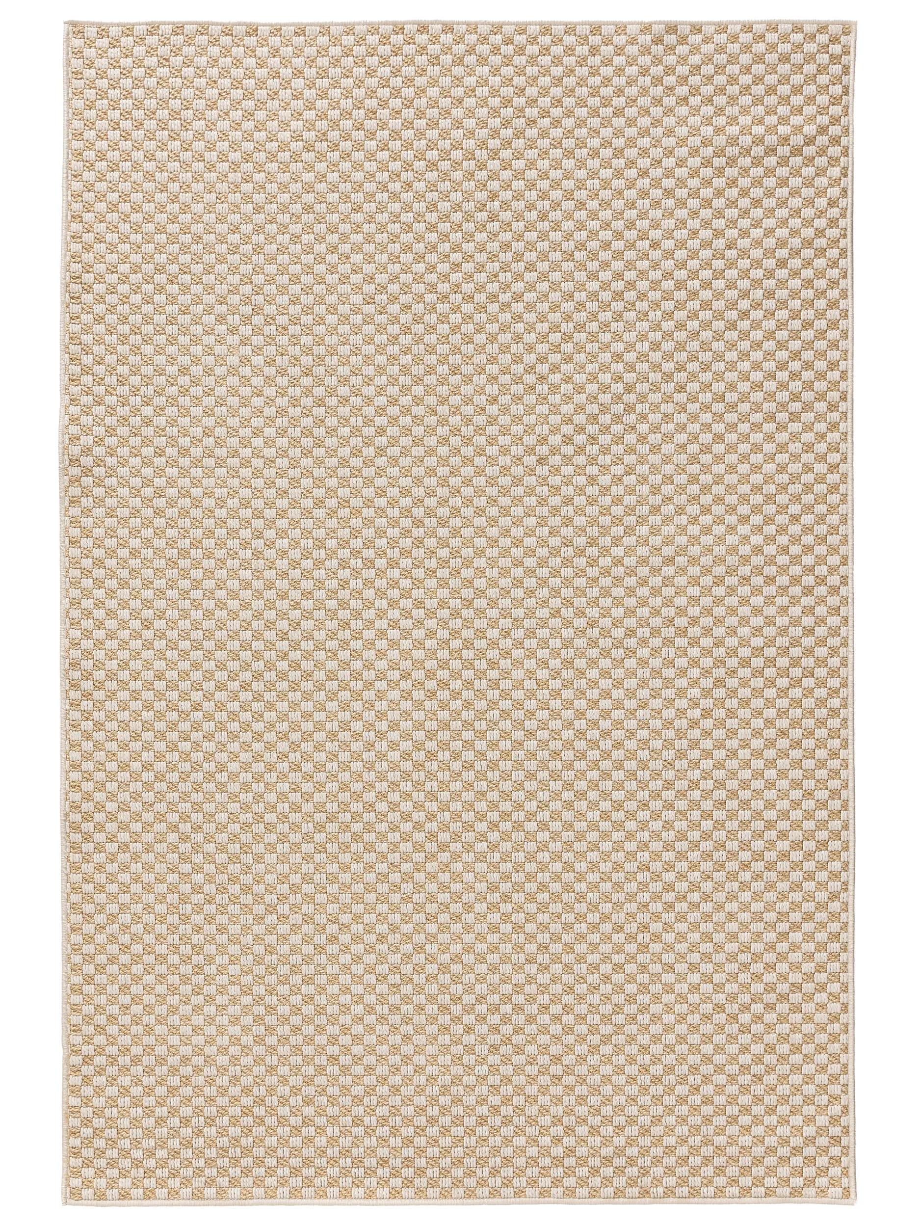 Tapis géométrique tressé à carreaux crème et beige d'intérieur et d'extérieur 192x290 cm