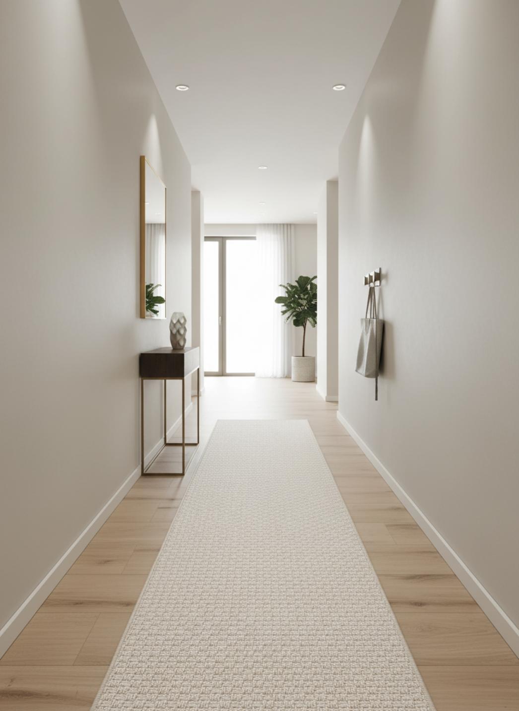 Son format élancé met le tapis en vraie perspective dans un couloir : il souligne le sens du passage et accentue l’axe de la pièce. Avec ses dimensions 77x240 cm, il structure l’alignement des portes et des meubles, crée un fil conducteur et allonge visuellement l’espace sans l’alourdir.