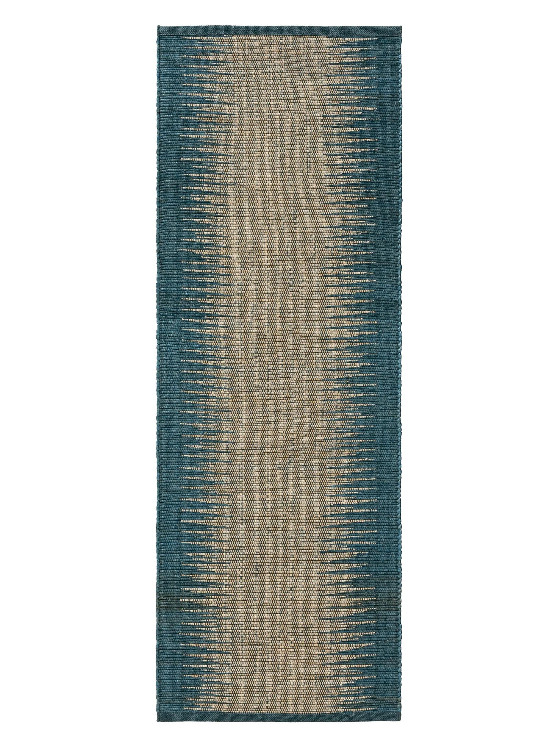 Tapis kilim de couloir bleu en jute 80x250 cm