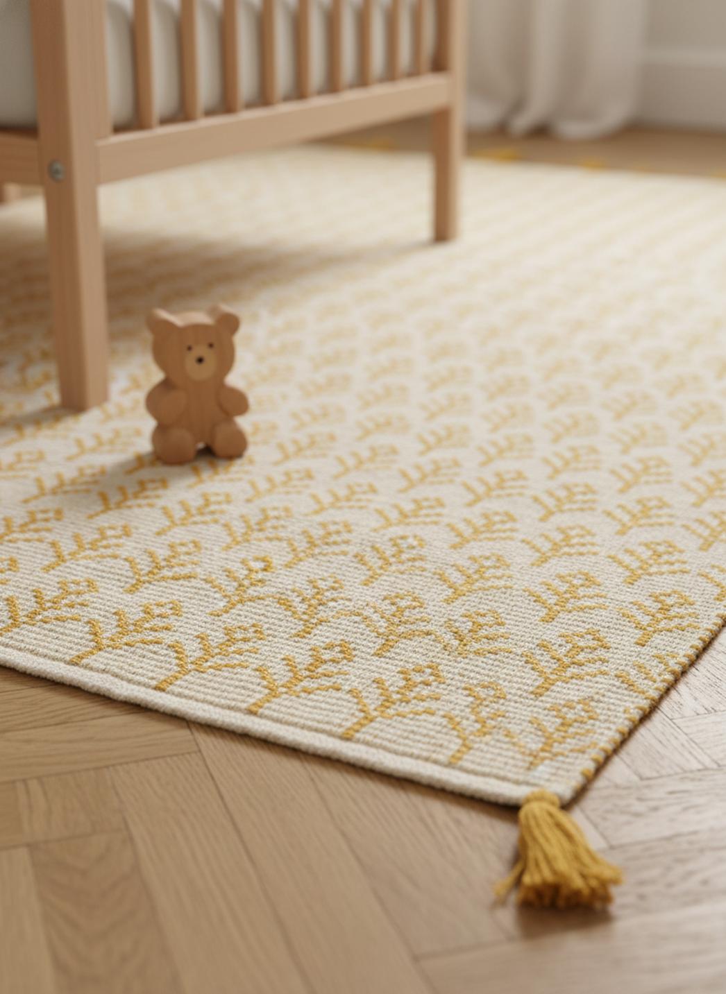 Tapis kilim motif à fleurs enfant beige et jaune 90x130 cm