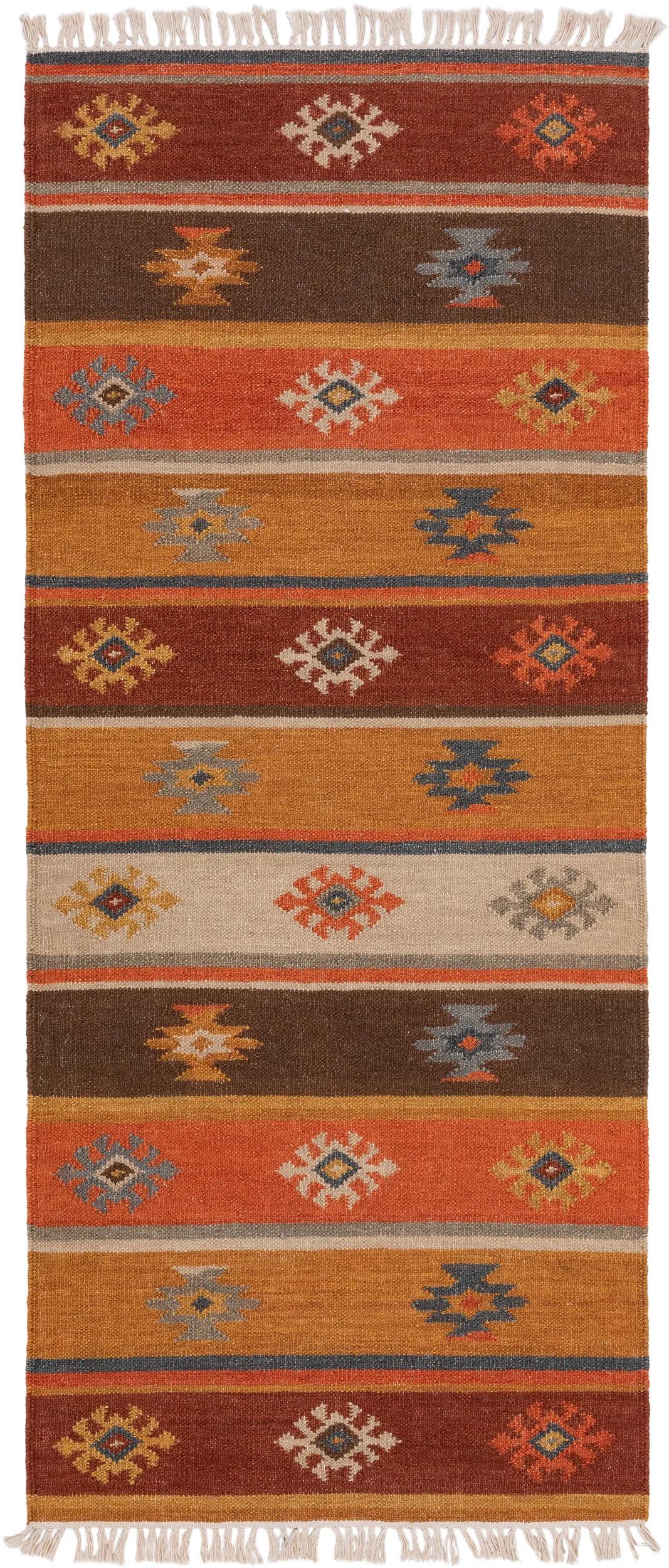 Tapis kilim motif ethnique descente de lit multicolore en laine 80x200 cm