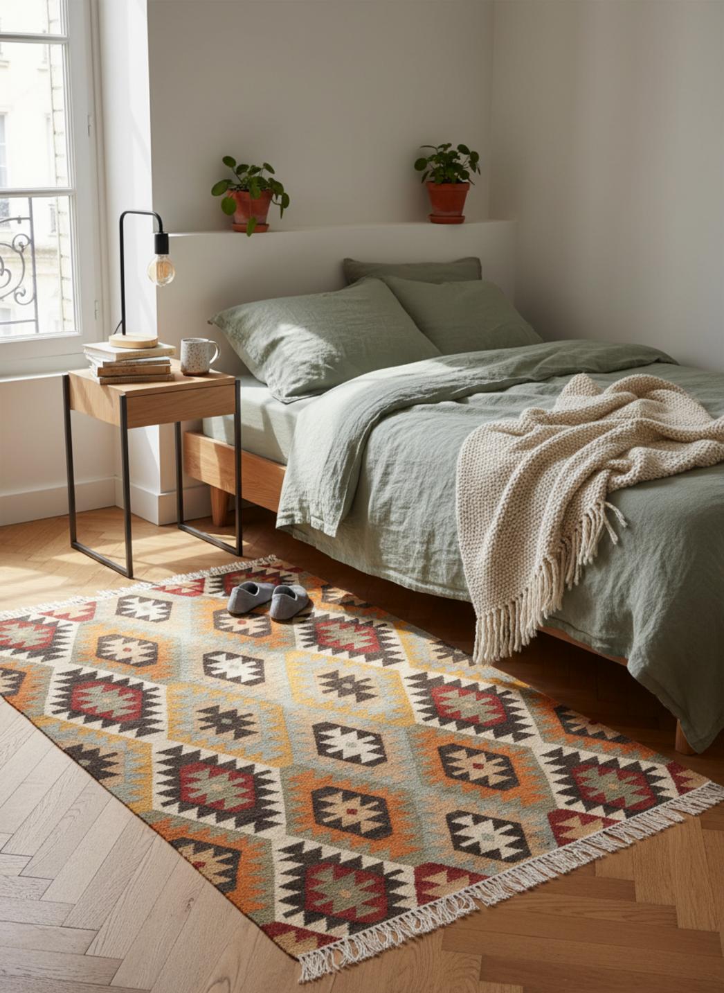 Enfin, l’entretien reste simple et discret : une aspiration douce suffit pour préserver les reliefs, et la tenue dans le temps témoigne de la qualité du fil et du tissage. Installé dans un salon, une chambre ou une entrée, ce tapis s’intègre naturellement à un intérieur ethnique ou à une décoration bohème moderne, apportant une signature graphique et une chaleur tactile qui transforment l’espace. collection complète de tapis ethniques
