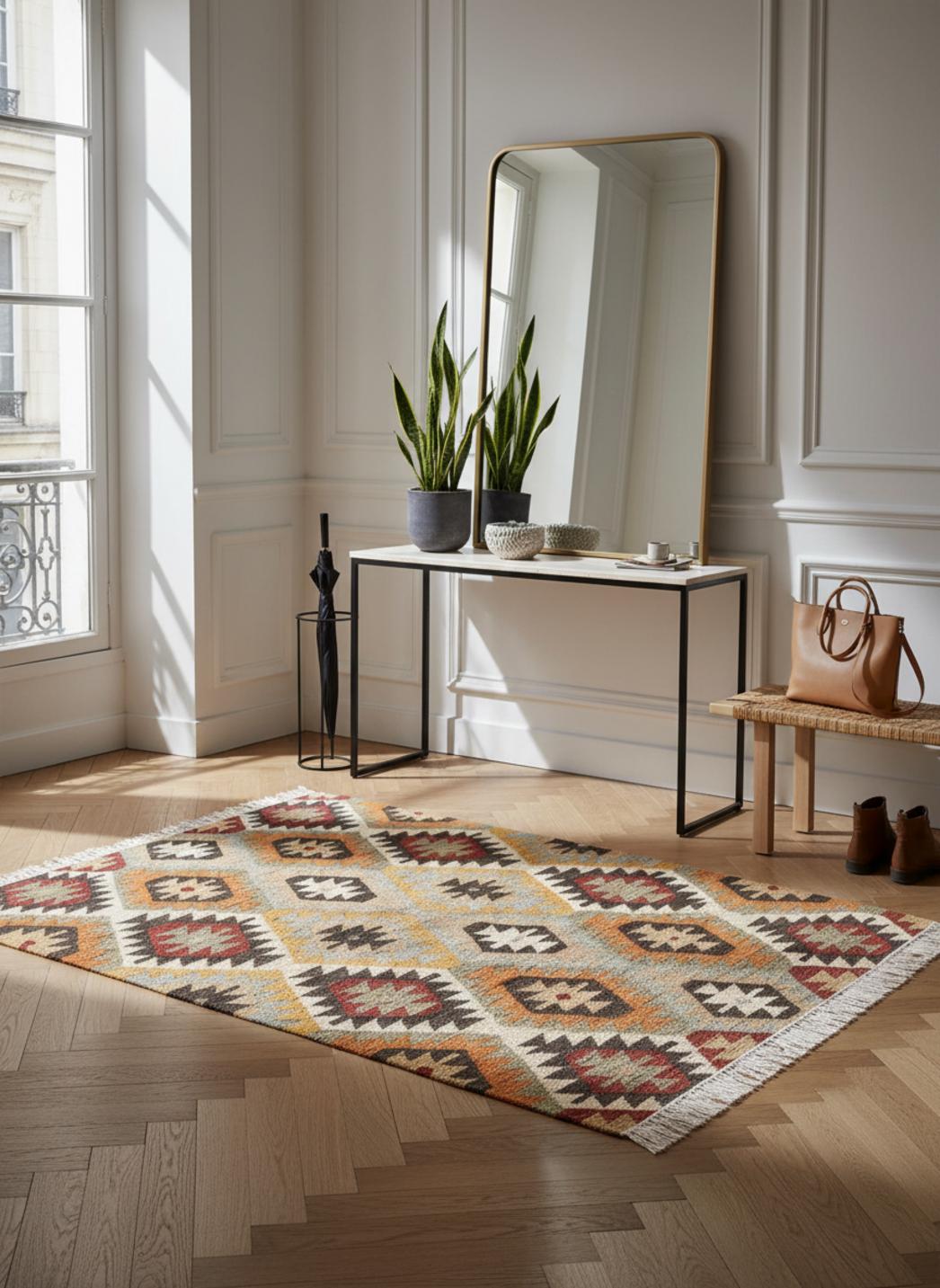 Tapis kilim motif ethnique multicolore en laine 70x140 cm
