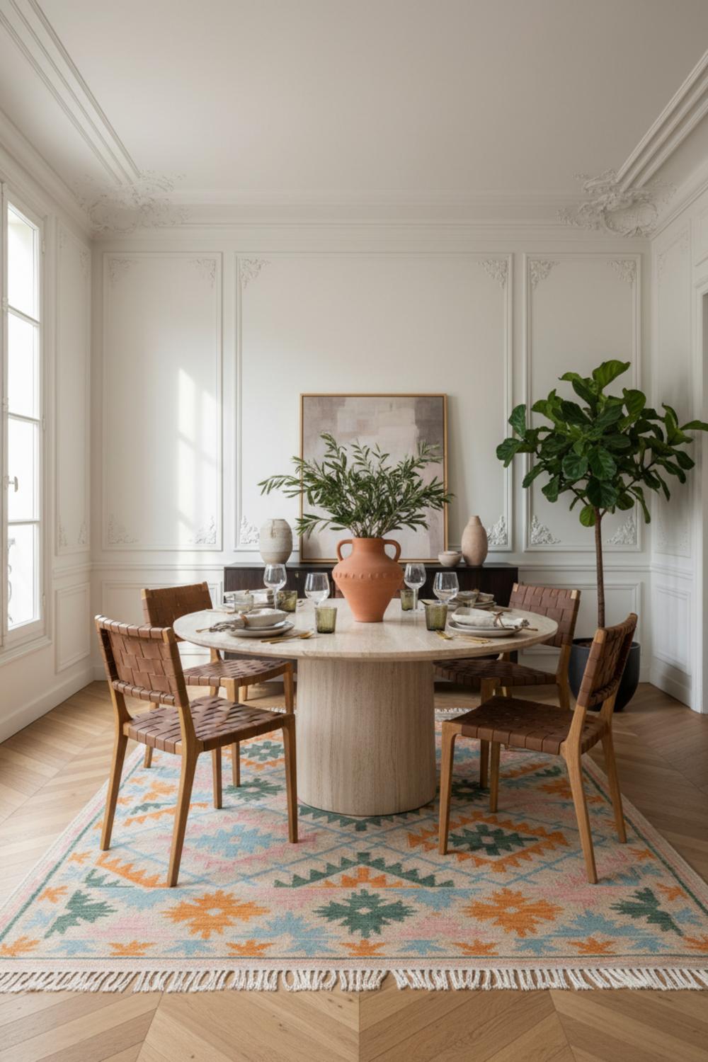 Enfin, l’entretien reste simple et respectueux : une aspiration douce suffit pour préserver la matière, garantie d’une bonne tenue dans le temps et d’un usage quotidien serein. Cet assemblage de nuances et de savoir-faire apporte une présence chaleureuse à un intérieur bohème moderne, à la fois accueillante et profondément décorative. collection complète de tapis ethniques