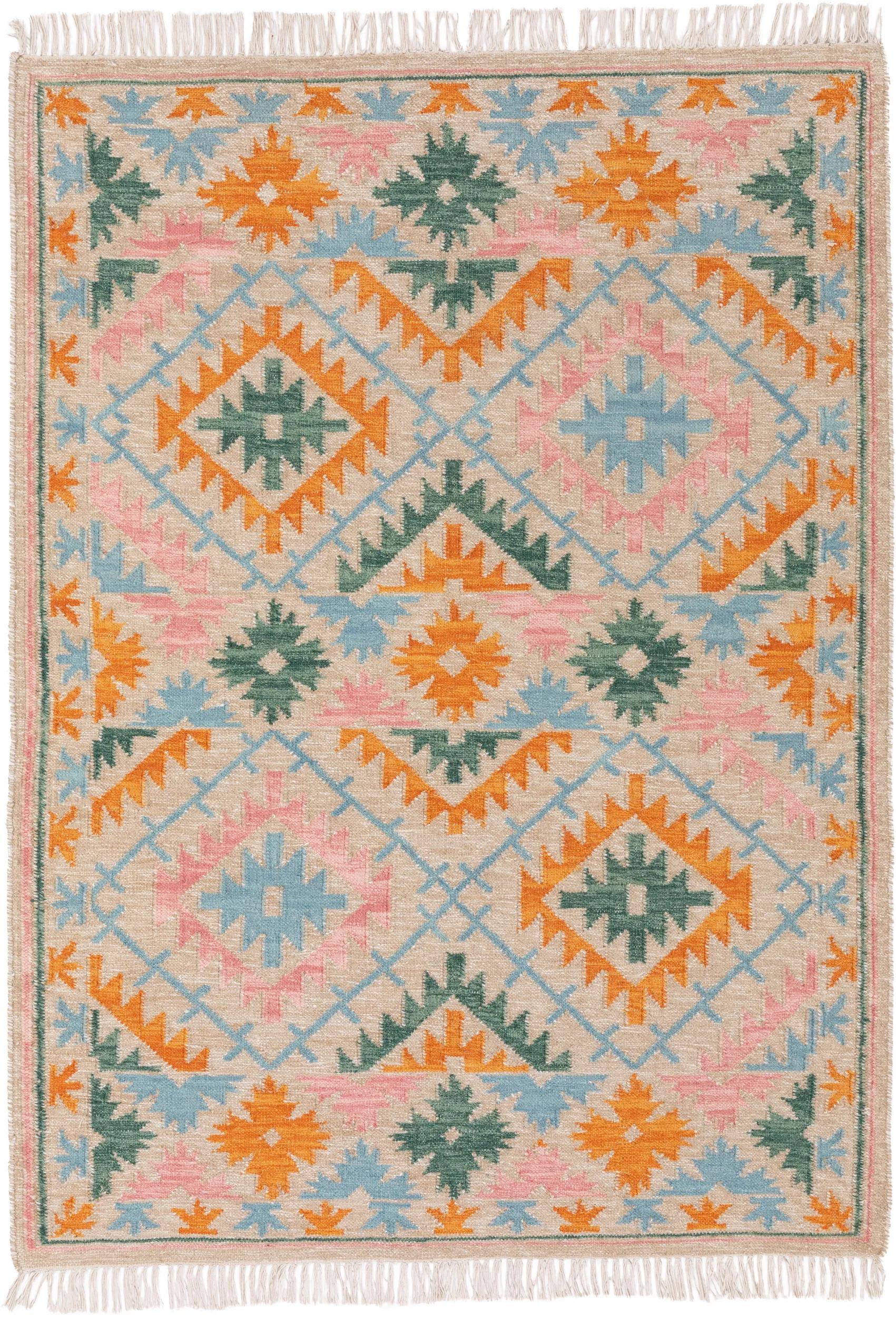 Tapis kilim motif ethnique multicolore et beige en laine 70x140 cm