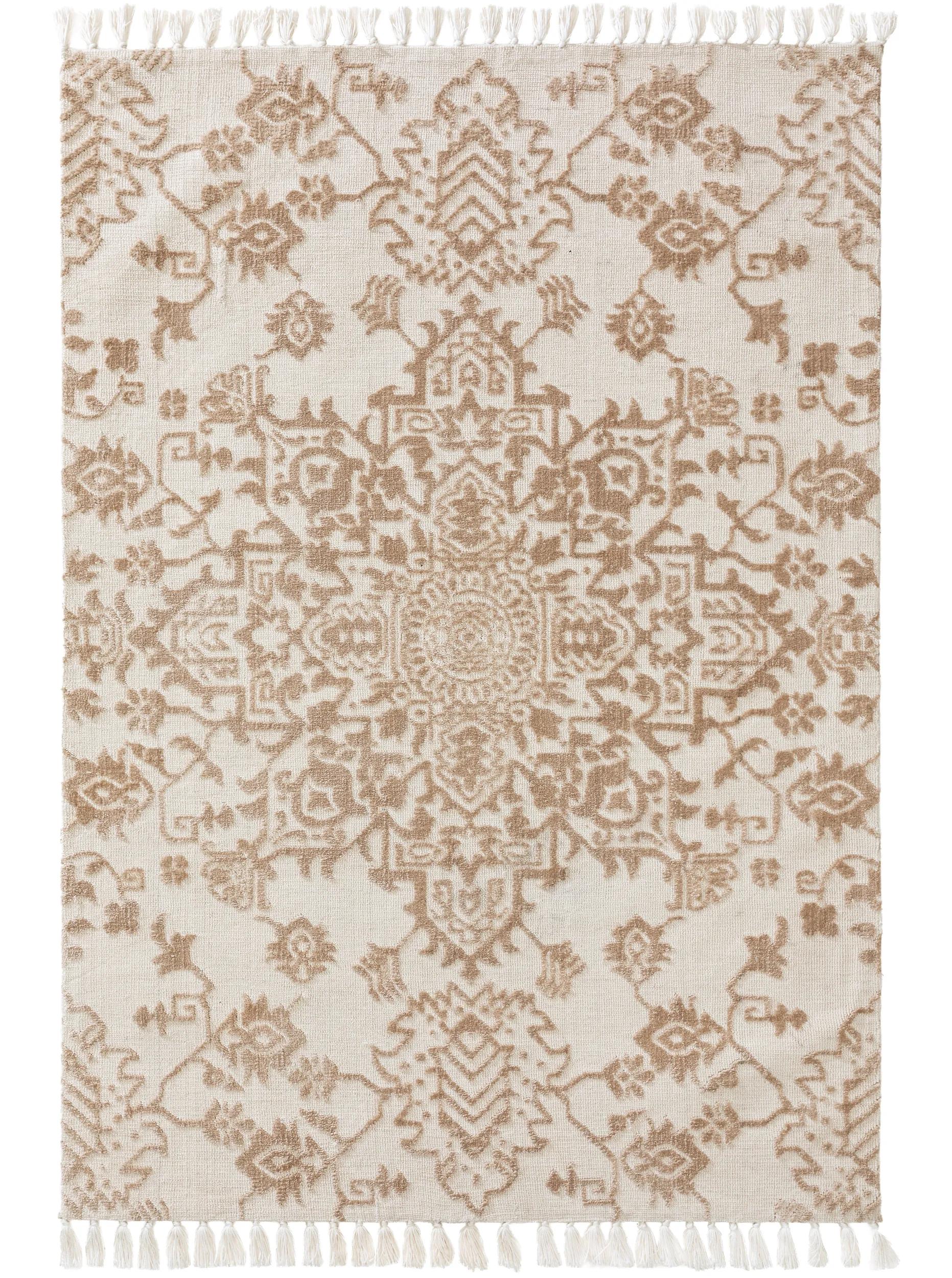 Tapis kilim motif fleurs à franges beige et crème 200x300 cm