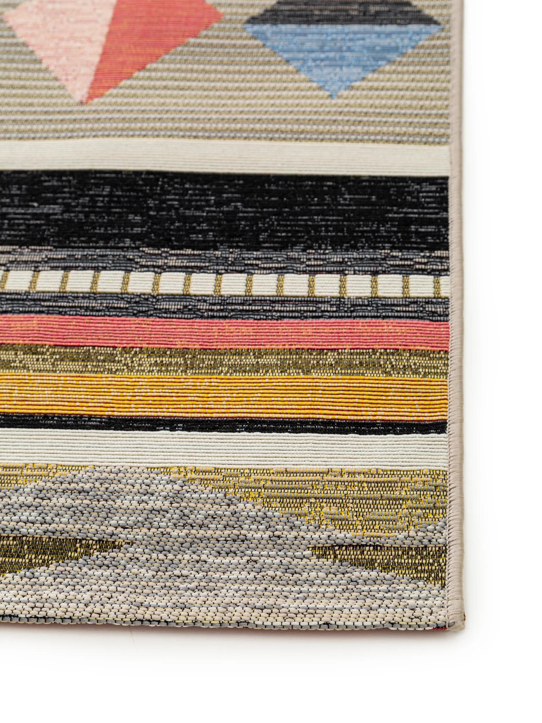 Chaleureux et expressif, ce tapis au style kilim séduit par la richesse de son tissage et sa palette multicolore vibrante. Dans un grand format de 240x340 cm, il habille avec audace et convivialité les vastes espaces extérieurs — terrasse, patio ou coin lounge — en leur apportant une dimension vivante et ensoleillée. Inspiré des traditions artisanales, son motif kilim mêle formes géométriques et nuances contrastées, créant un jeu visuel à la fois énergique et harmonieux. Chaque couleur semble dialoguer avec la lumière du jour, transformant l’espace en un lieu plein de vie et de personnalité. Ce tapis s’accorde parfaitement avec les matériaux naturels comme le bois, la pierre ou le rotin, et met en valeur les ambiances bohèmes ou ethniques revisitées. Idéal sous un grand salon d’extérieur ou une table conviviale, il structure le décor tout en diffusant chaleur et authenticité. Véritable pièce de caractère, il invite à la détente et au partage, transformant les extérieurs en un espace accueillant, coloré et empreint d’esprit voyageur.