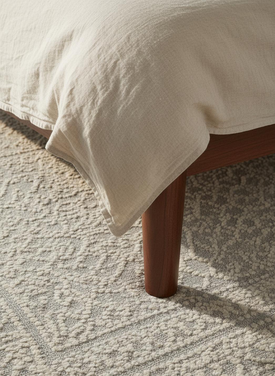 Facile à intégrer dans un intérieur polyvalent, il accompagne une chambre minimaliste comme un salon enveloppant. Sa faible épaisseur favorise une transition fluide entre sol et mobilier, tandis que sa composition pensée pour l’usage quotidien préserve le dessin et les contrastes au fil du temps.