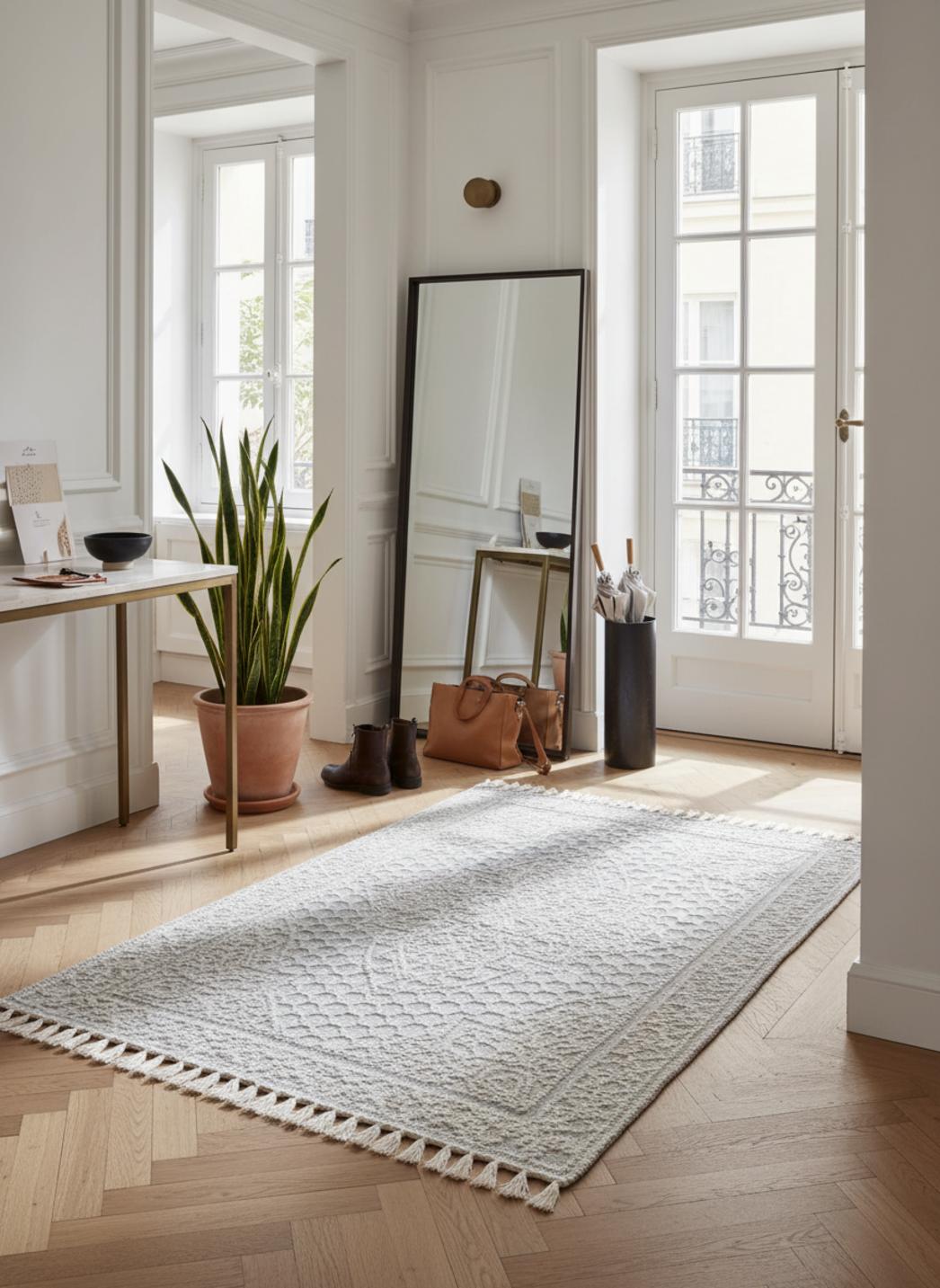 Épurant l’esthétique, ce tapis dialogue avec des matériaux contemporains et des lignes claires. Il valorise des meubles aux finitions mates, ajoute une couche de chaleur visuelle et crée un équilibre entre architecture et confort, sans jamais renoncer à une allure soignée et raffinée.