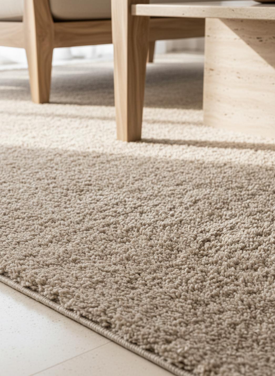 Les fibres synthétiques sont non-poreuses : la saleté reste en surface. Un coup d'aspirateur régulier suffit à le garder impeccable. Contrairement aux matières naturelles, il ne peluche pas.