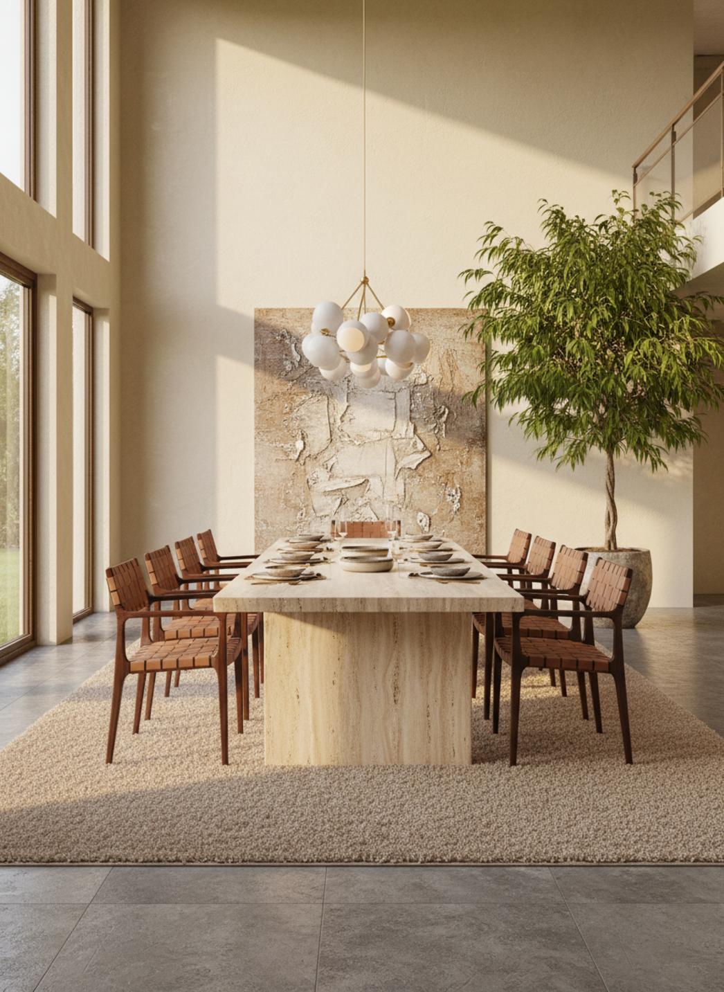 Présent comme une grande scène posée au sol, le format 300x400 structure l’espace et définit clairement une zone de confort. Placé au centre d’un séjour, il réunit les assises et recentre la conversation ; installé sous un lit, il crée une mise en ordre chaleureuse. Sa dimension généreuse équilibre meubles et volumes, apportant une présence harmonieuse sans surcharge visuelle.