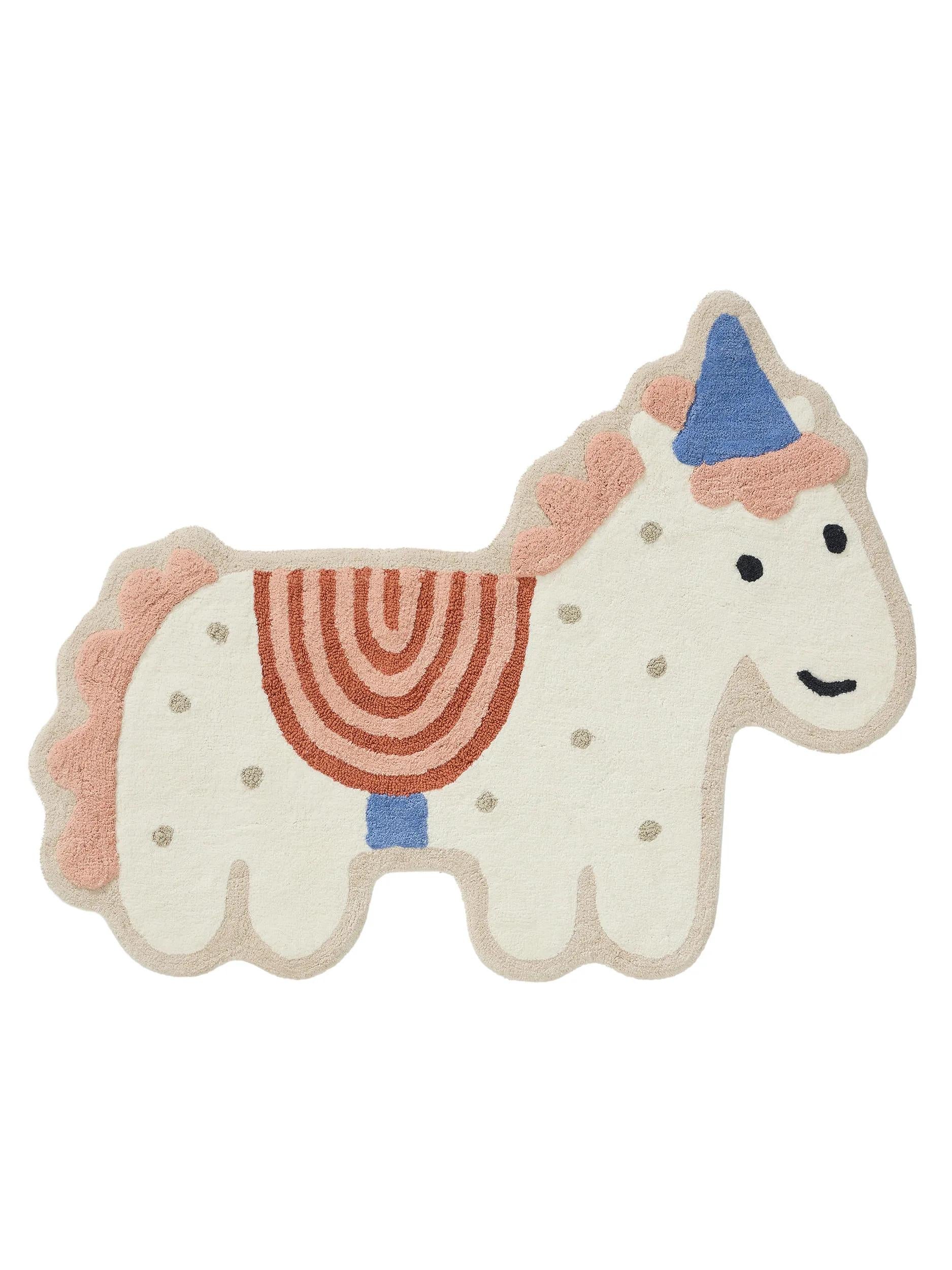 Tapis licorne motif animaux enfant multicolore en coton 100x130 cm