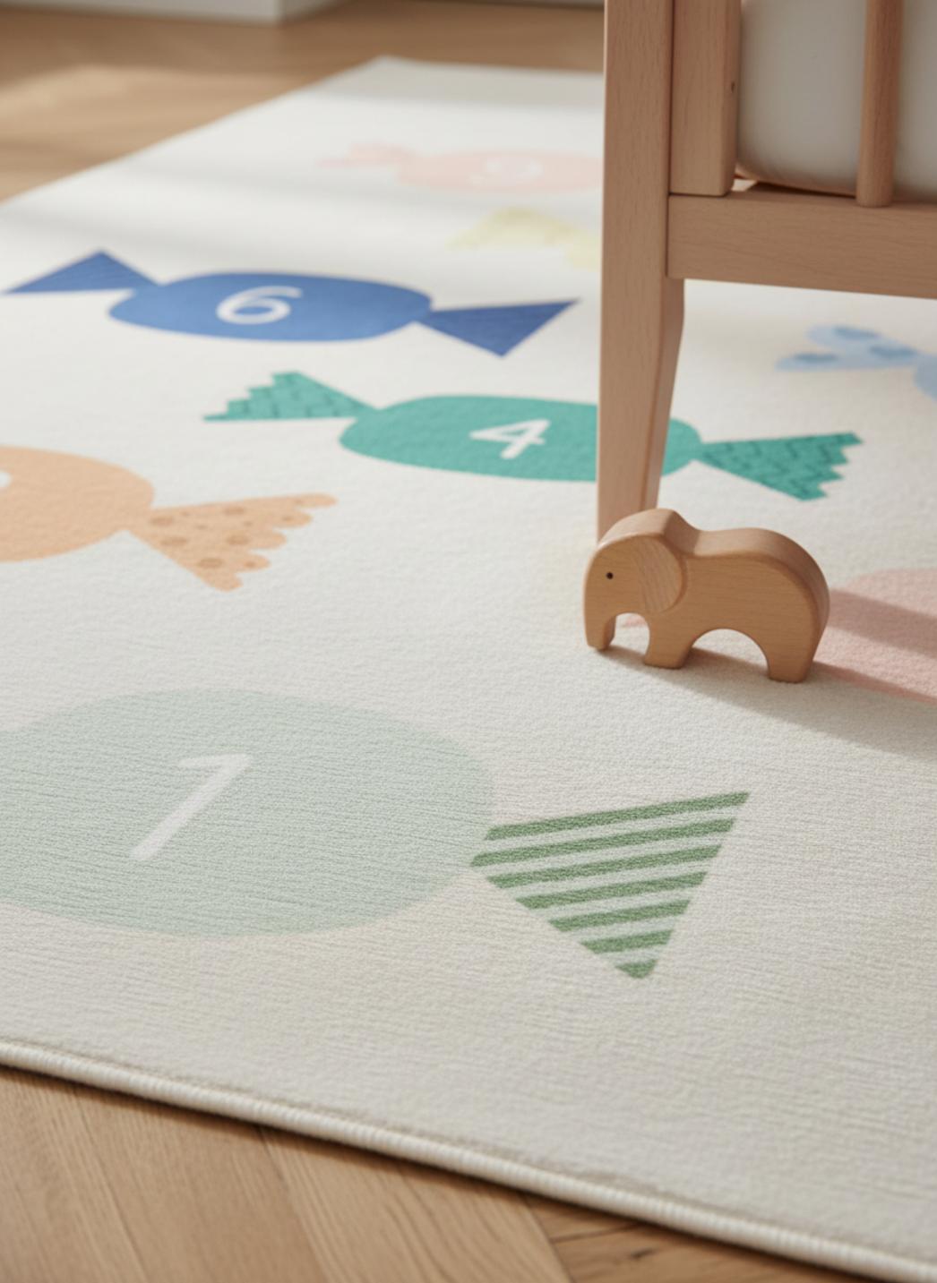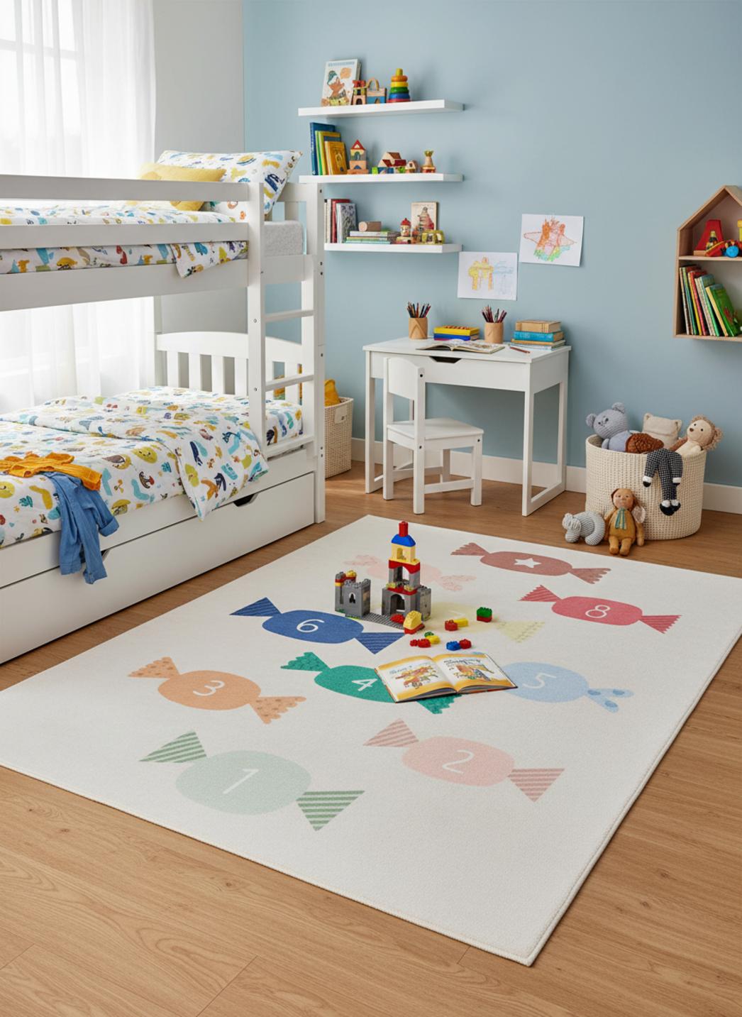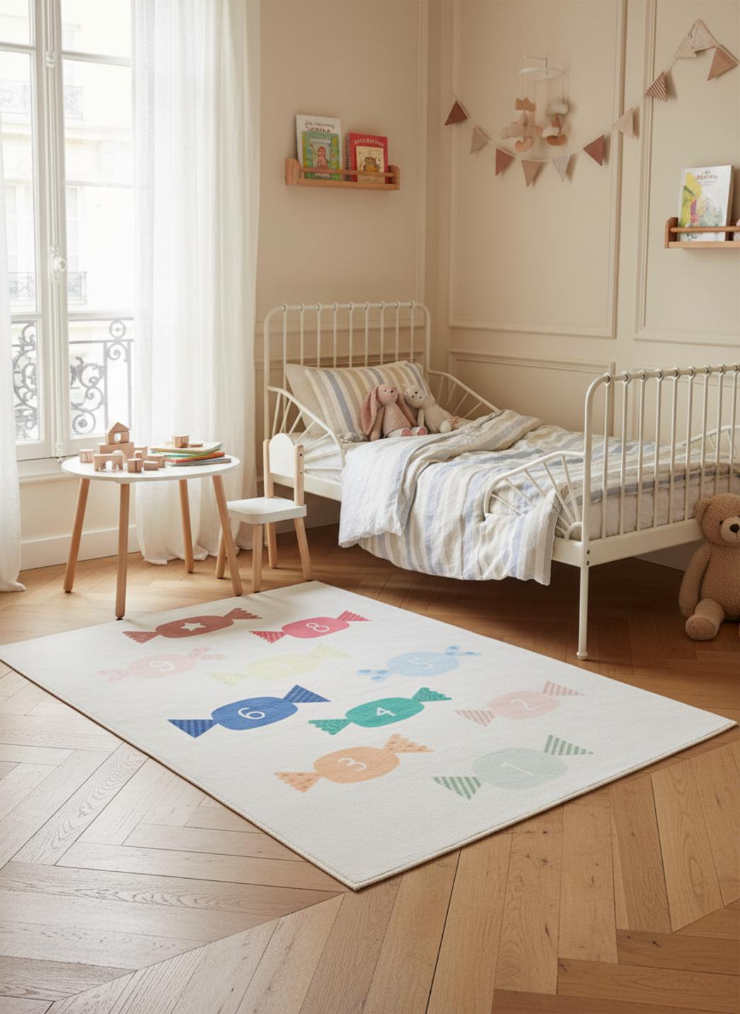 Imaginez un coin de chambre où chaque pas devient une invitation au jeu et à la tendresse : ce tapis aux motifs sucrés évoque des après-midis rieurs et des soirs paisibles, une palette bonbon qui réchauffe la pièce sans l'alourdir. Les teintes multicolore dansent doucement sous la lumière tamisée, créant un décor qui stimule l'imagination tout en s'accordant au mobilier en bois clair et aux plaids moelleux.