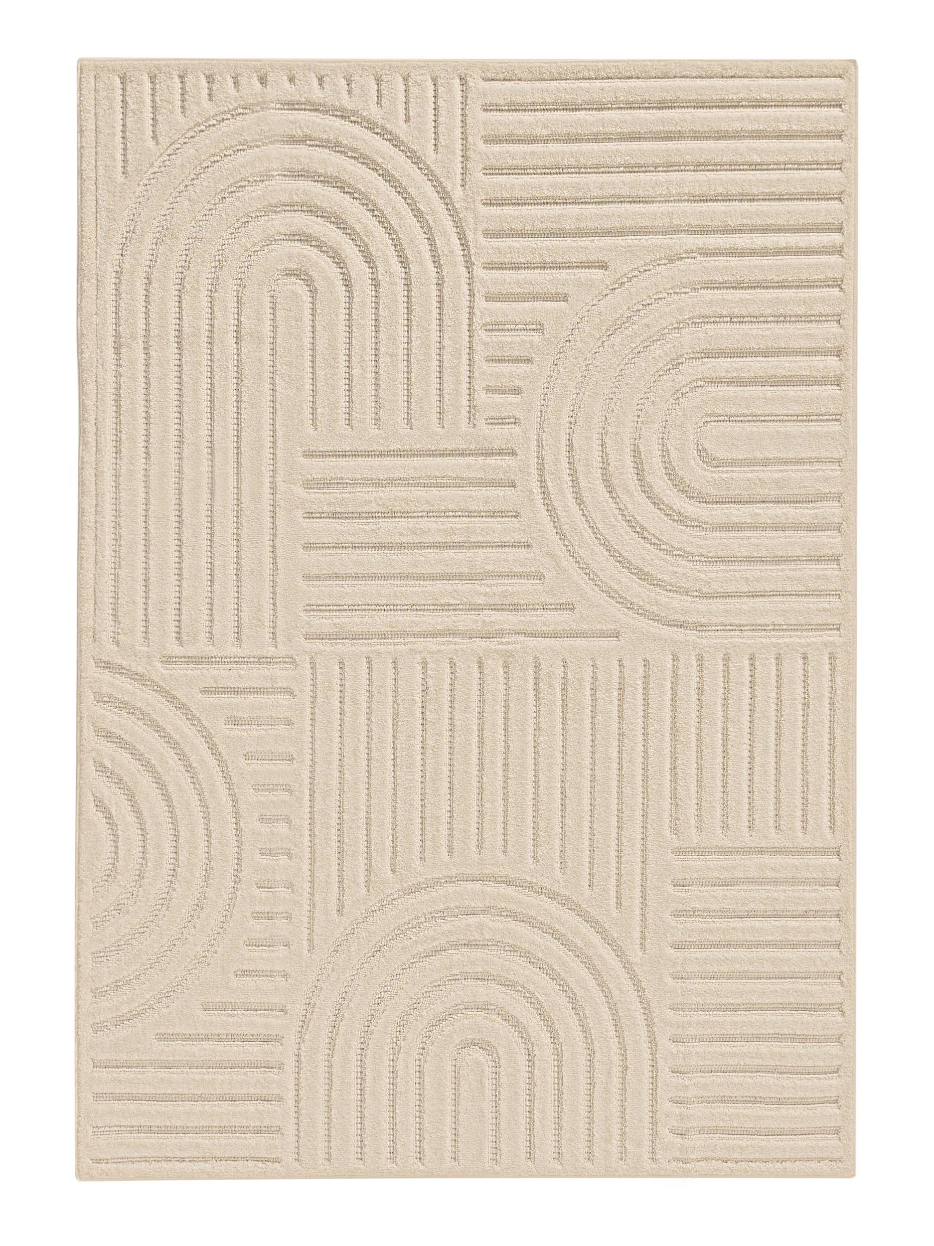 Pensé pour souligner des volumes, l’équilibre entre lignes nettes et courbes douces instaure une profondeur harmonieuse. Les zones de densité contrastent avec des plages claires et la gamme beige adoucit les confrontations visuelles. La texture pensée pour un confort quotidien propose une sensation chaleureuse sous les pas, comme un tapis qui structure sans s’imposer.