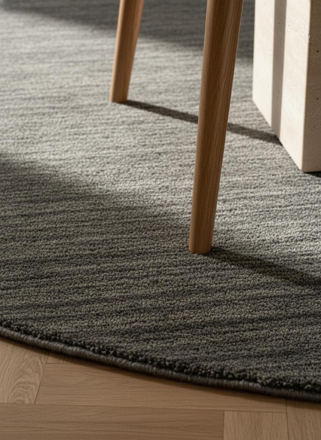 Imaginez une pièce apaisée où une surface subtilement texturée installe immédiatement une sensation de calme. Le tissage chiné joue sur les contrastes feutrés pour créer un graphisme délicat, tandis que la nuance gris foncé affirme une présence contemporaine sans écraser la lumière. Lignes épurées et douceur visuelle se conjuguent pour offrir une esthétique clairement moderne, idéale pour composer un intérieur élégant et reposant.