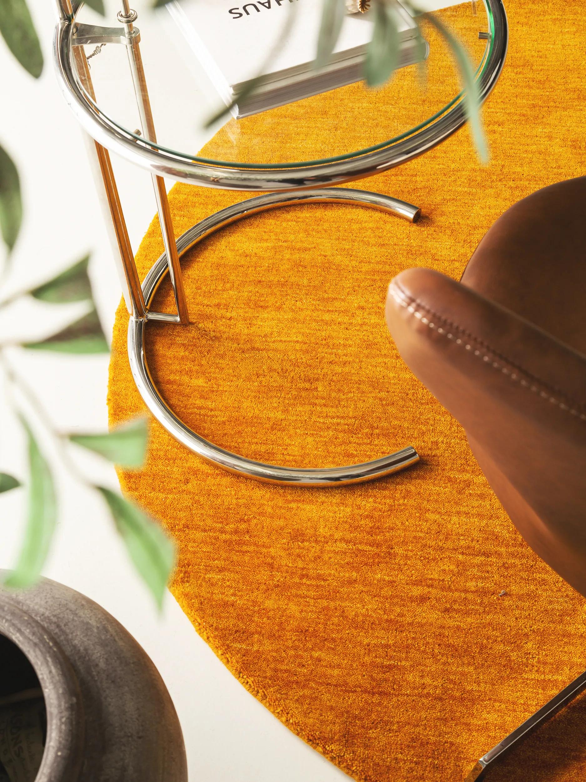 Tapis moderne chiné rond orange en laine 160 cm de diamètre