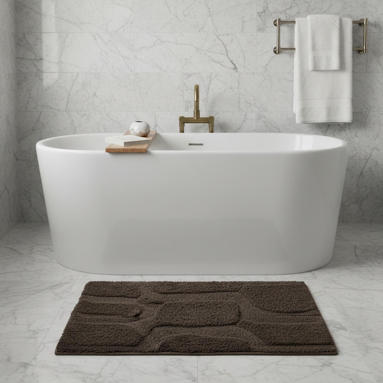 Dans une salle d'eau pensée pour l'équilibre et la clarté, ce tapis révèle une signature moderne qui invite à la douceur sans ostentation, tandis que sa vocation de bain se lit dans chaque choix de matière et de finition.
