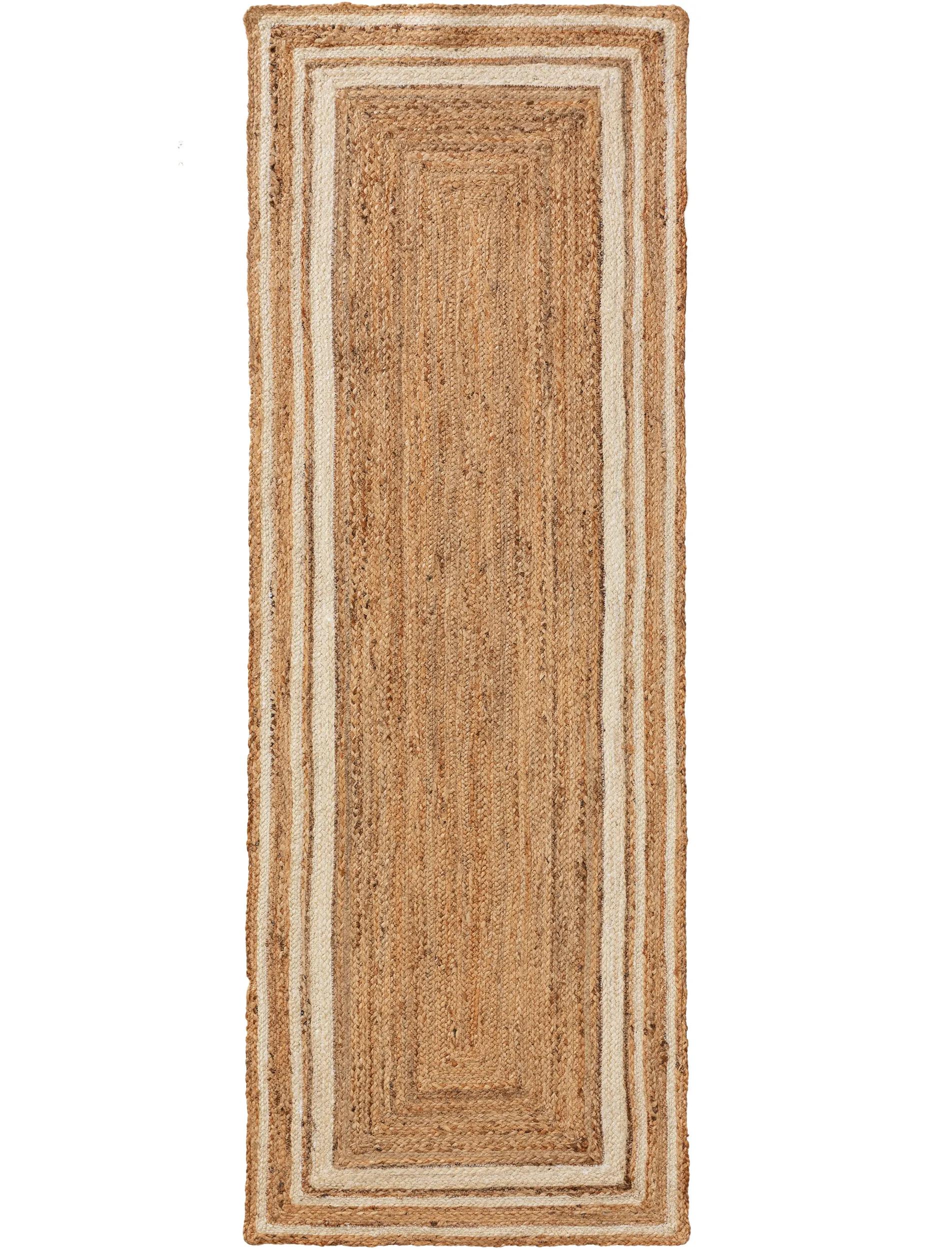 Tapis moderne de couloir marron clair et blanc en jute 70x200 cm
