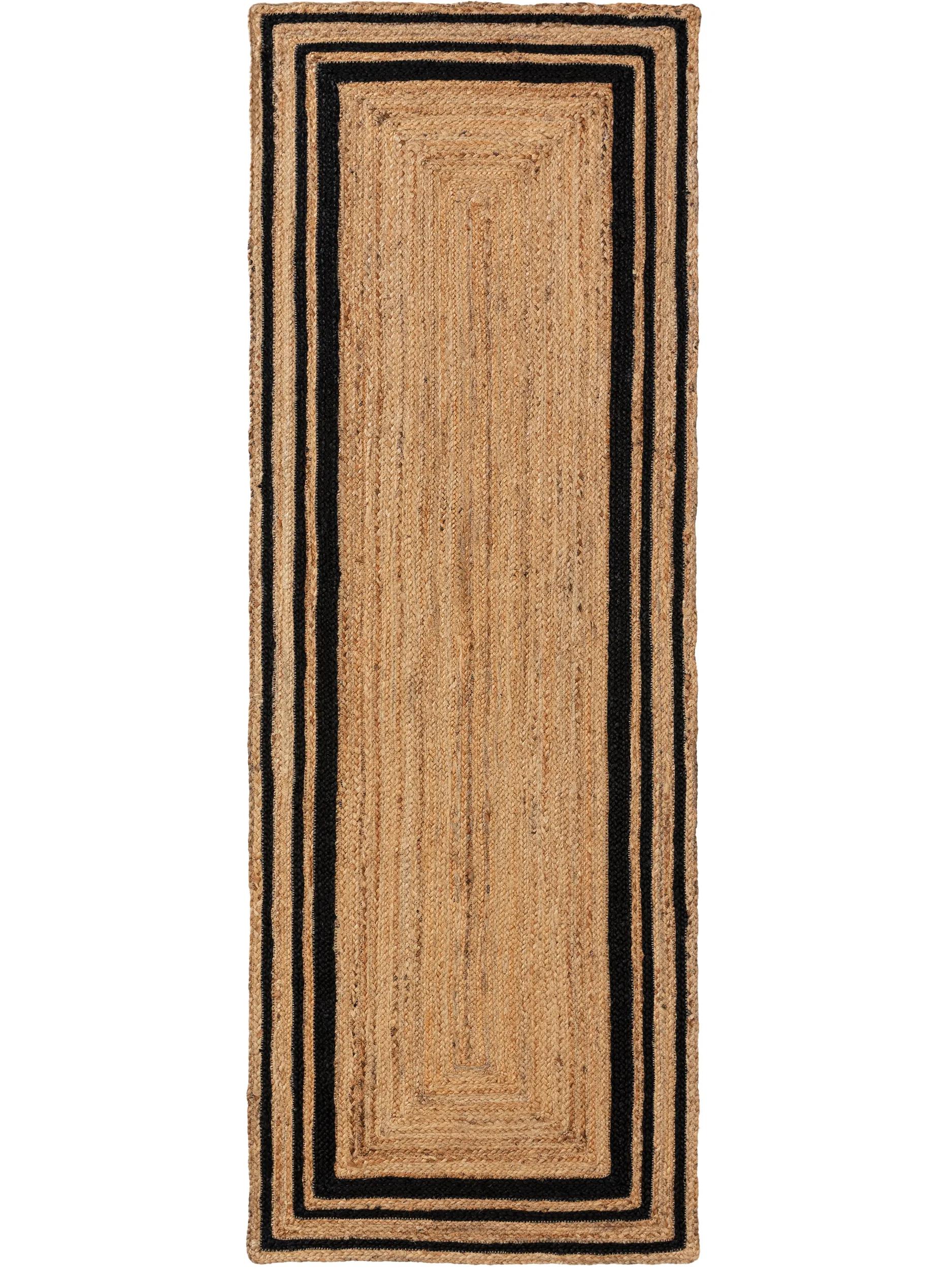 Tapis moderne de couloir marron clair et noir en jute 70x200 cm