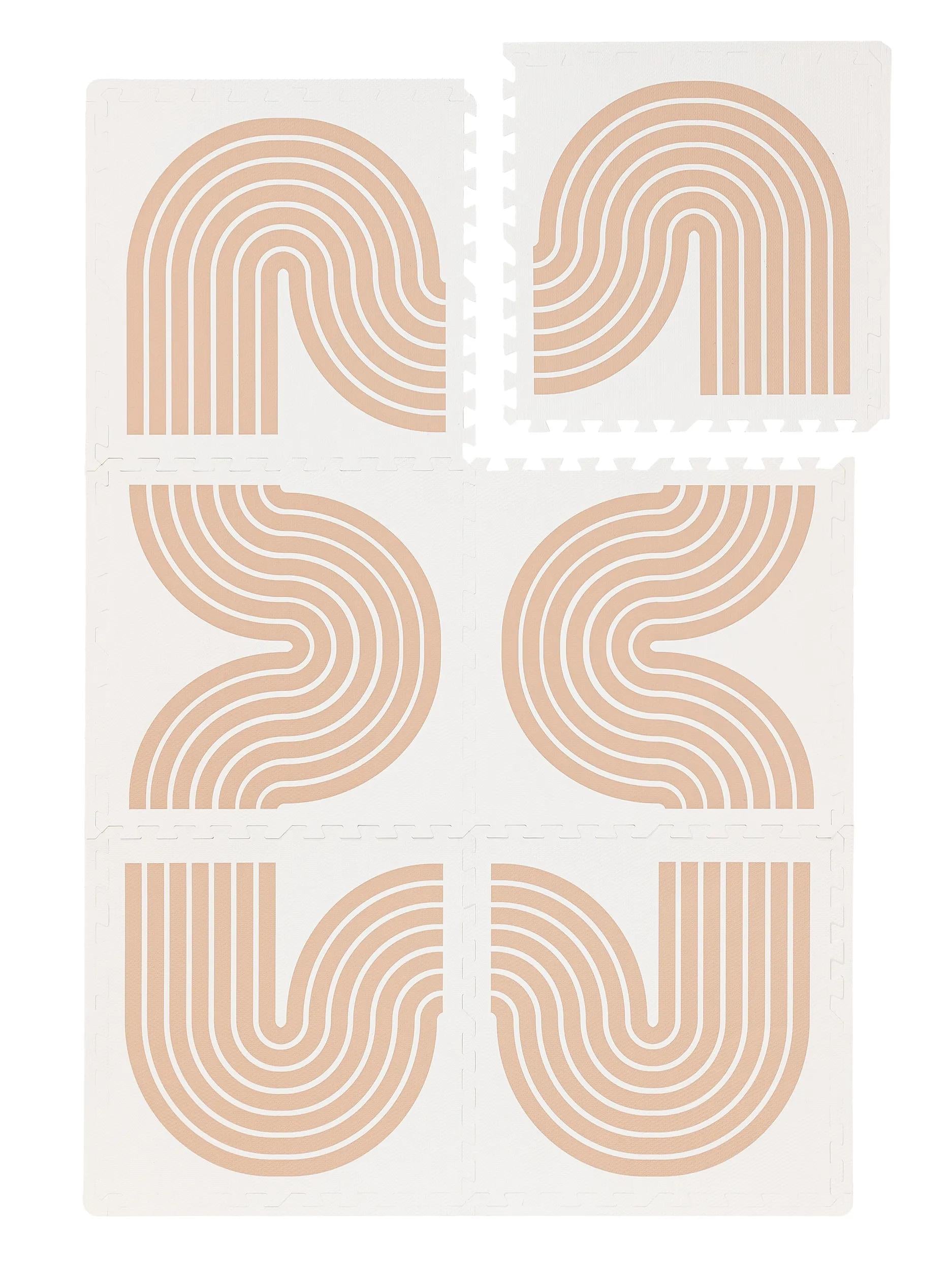 Le système modulable du motif évoque un grand puzzle où chaque pièce devient une invitation à l'imagination. Les formes stimulent le repérage visuel et se prêtent à des scénarios de jeu inventifs ; parents et enfants peuvent transformer cet espace selon les envies du jour, entre parcours motricité et ateliers créatifs.