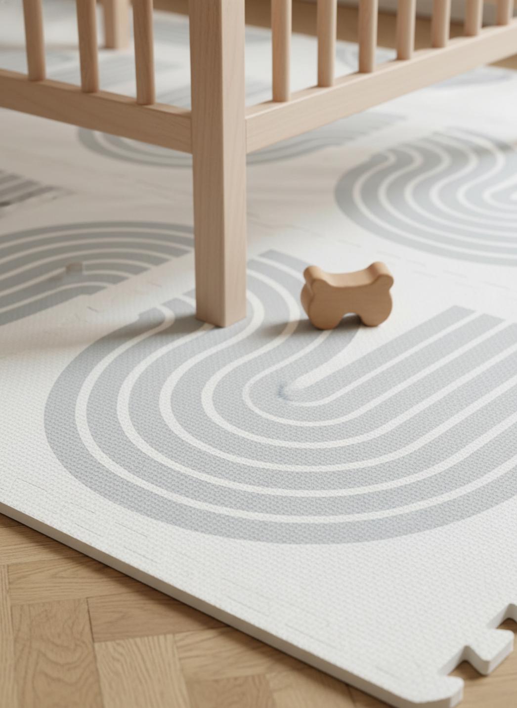 Dans la douceur d'une chambre baignée de lumière tamisée, ce tapis incarne une esthétique moderne qui invite à ralentir: la surface moelleuse appelle les petits pieds, les mains curieuses et les moments tendres partagés sur le sol. Il transforme un coin de la pièce en un véritable cocon où chaque instant devient prétexte à explorer, imaginer et se reposer.