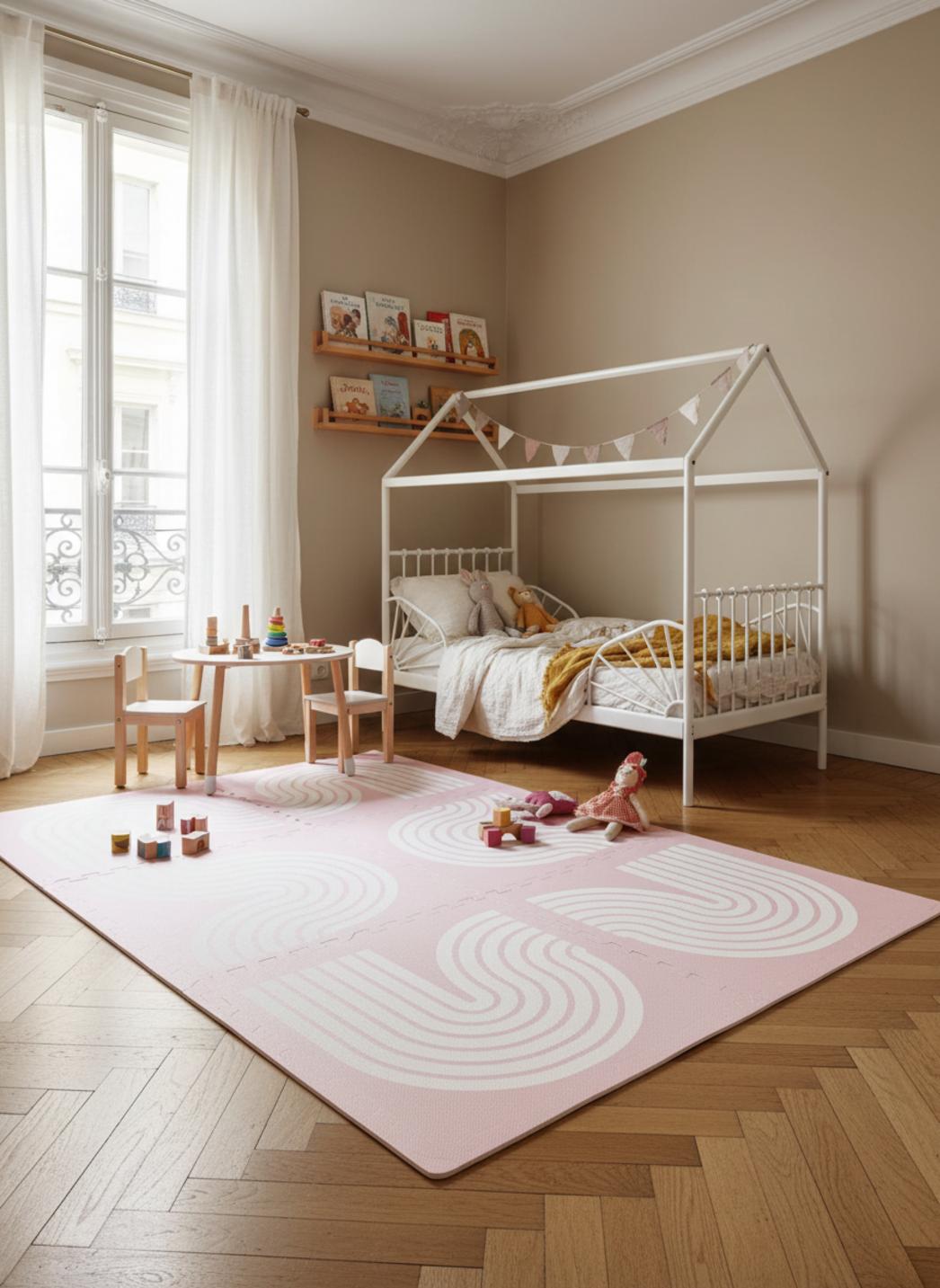 Au réveil, imaginez votre petit retrouvant un coin de bonheur où les après-midis se transforment en aventures tranquilles : un sol qui appelle aux histoires, aux constructions et aux câlins, parfait pour les moments de jeux et de douceur avec bébé ou l'enfant plus grand.