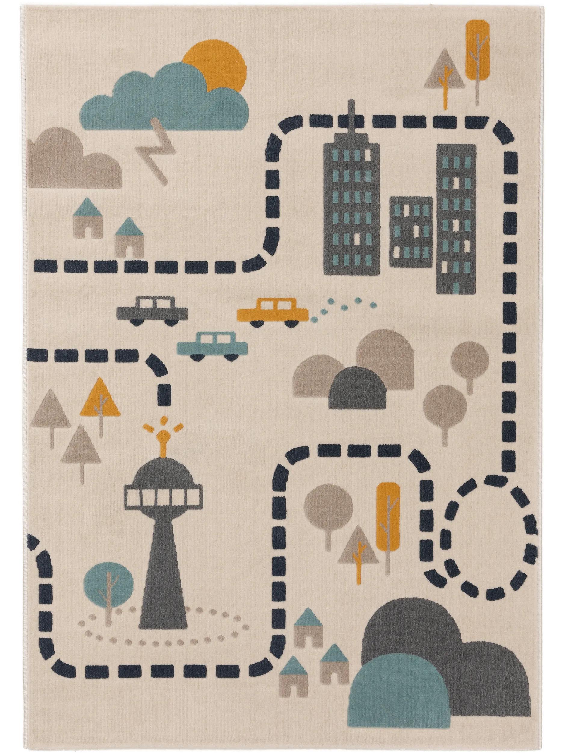 Tapis moderne dessin de ville enfant beige 160x230 cm