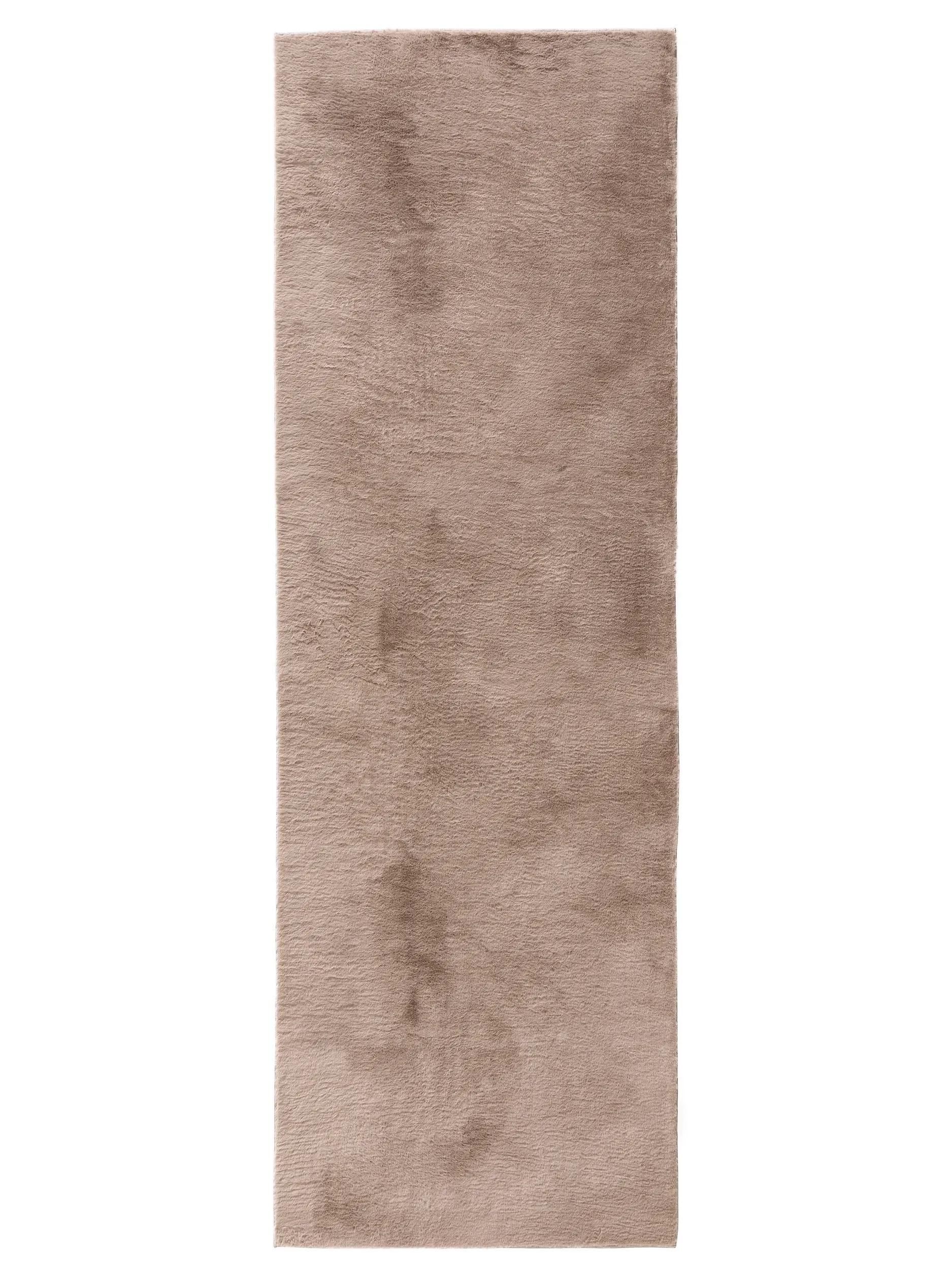 Tapis moderne fausse fourrure de couloir taupe 80x250 cm