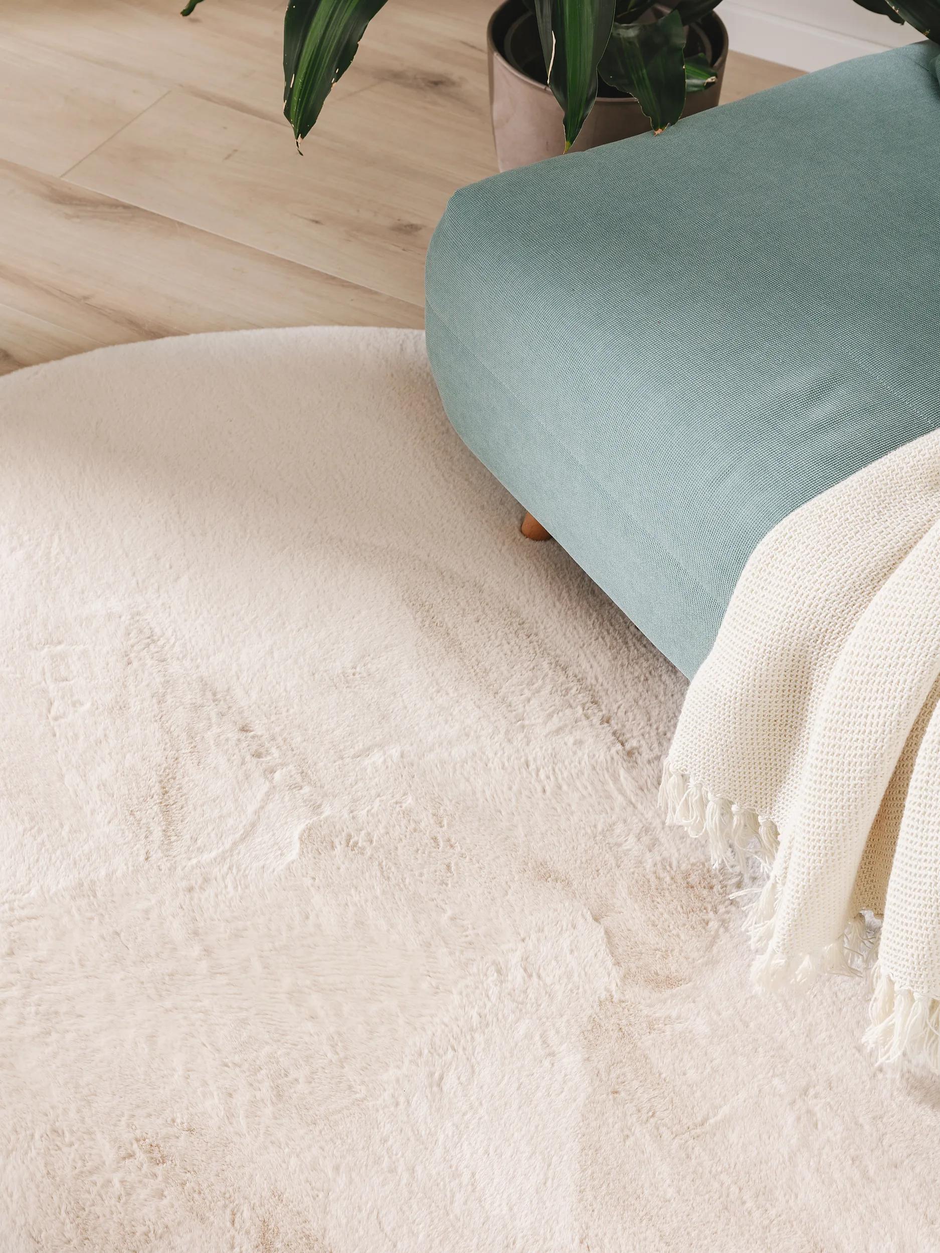 Tapis moderne fausse fourrure rond beige 160 cm de diamètre