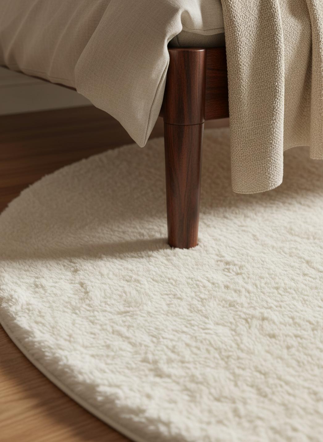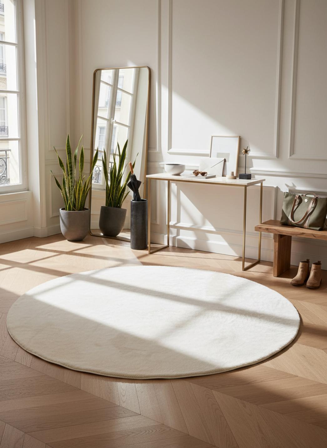 Sa silhouette rond impose un point focal tout en douceur, équilibrant les lignes du mobilier contemporain et adoucissant les angles d’un salon ou d’une chambre. Avec un diamètre de 80 cm, il définit une zone intime autour d’un fauteuil, sous une table basse minimaliste ou au pied d’un lit, apportant une note sculpturale sans encombrer l’espace. Le format invite à créer des compositions soignées, où chaque élément respire.