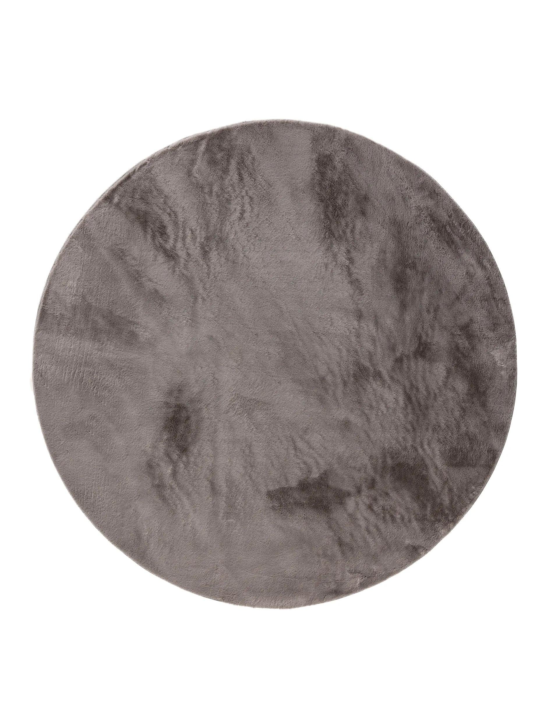 Tapis moderne fausse fourrure rond gris 160 cm de diamètre