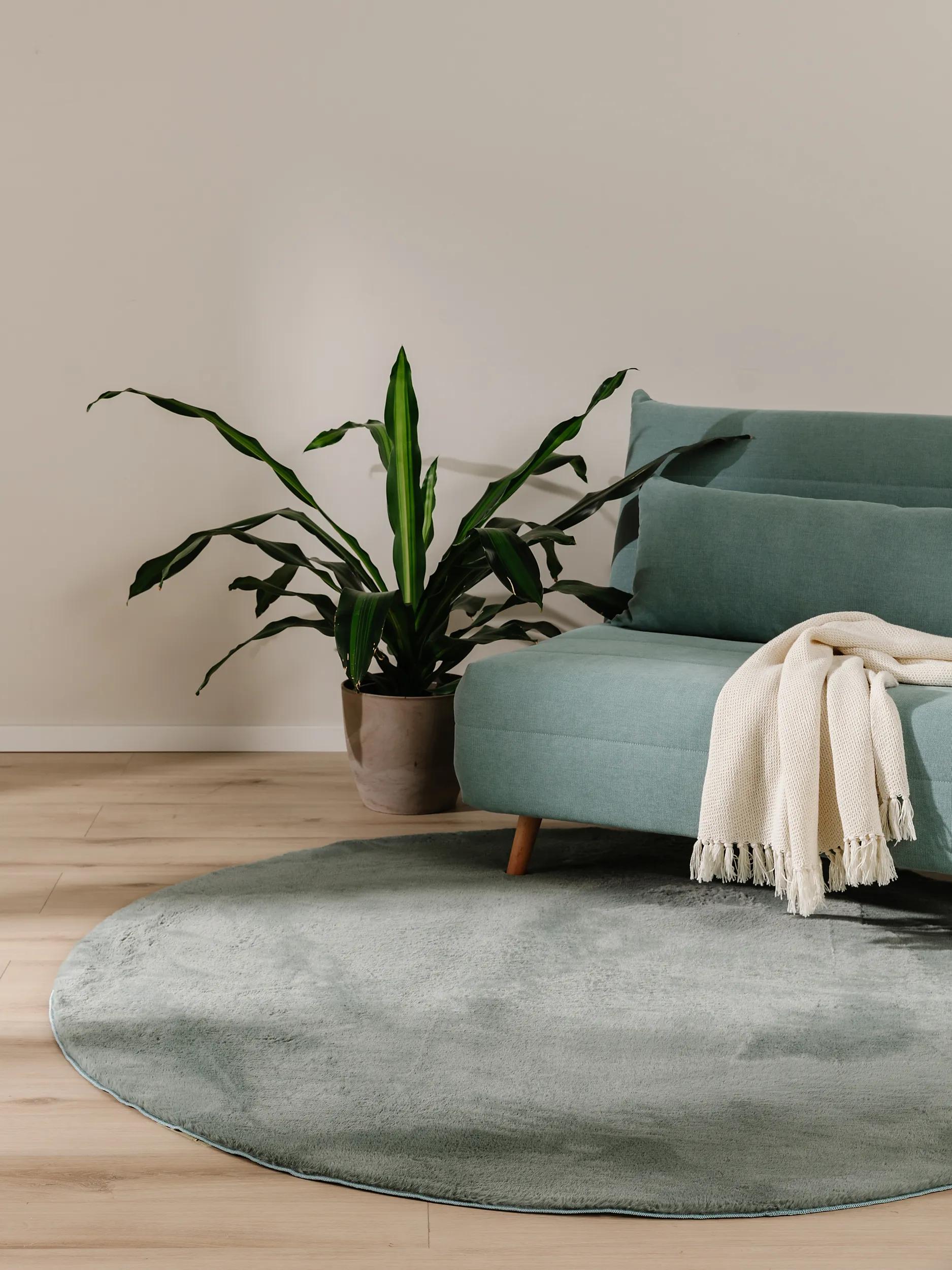 Tapis moderne fausse fourrure rond vert d'eau 200 cm de diamètre