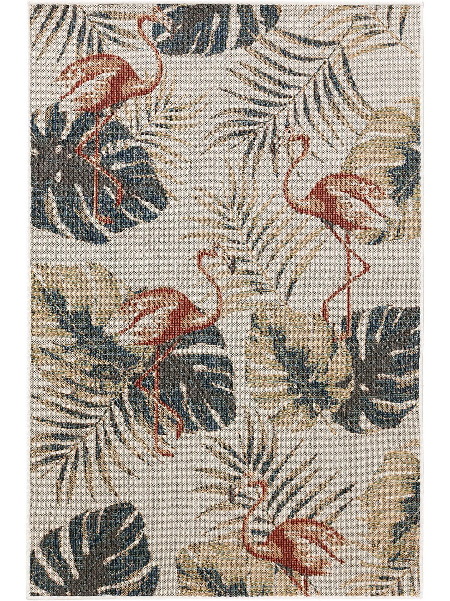Tapis moderne feuilles et flamants vert et beige d'intérieur et d'extérieur 160x230 cm