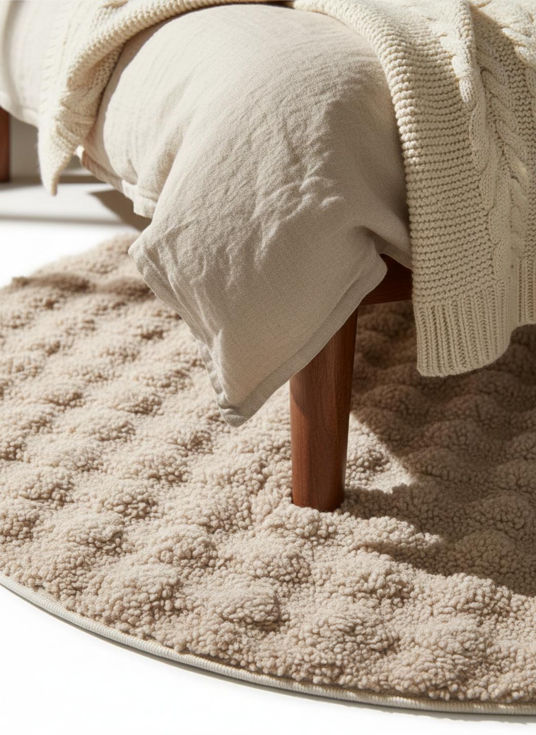 Conçu pour devenir un point d’ancrage, ce modèle rond propose une géométrie apaisante qui casse les angles et adoucit la pièce. Sa silhouette circulaire recentre le regard et crée un coin chaleureux autour d’un fauteuil lounge ou d’une table basse sculpturale. Le format privilégie l’harmonie et transforme une zone en un petit théâtre de confort visuel et tactile.