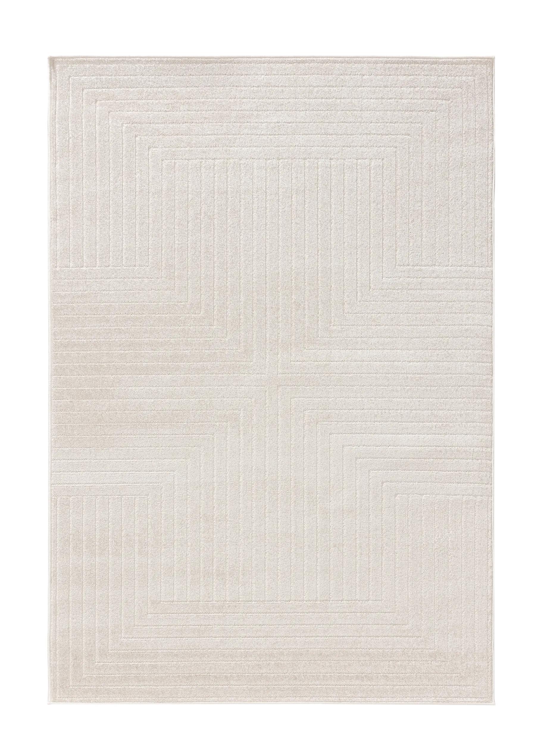 Tapis moderne géométrique crème d'intérieur et d'extérieur 200x290 cm