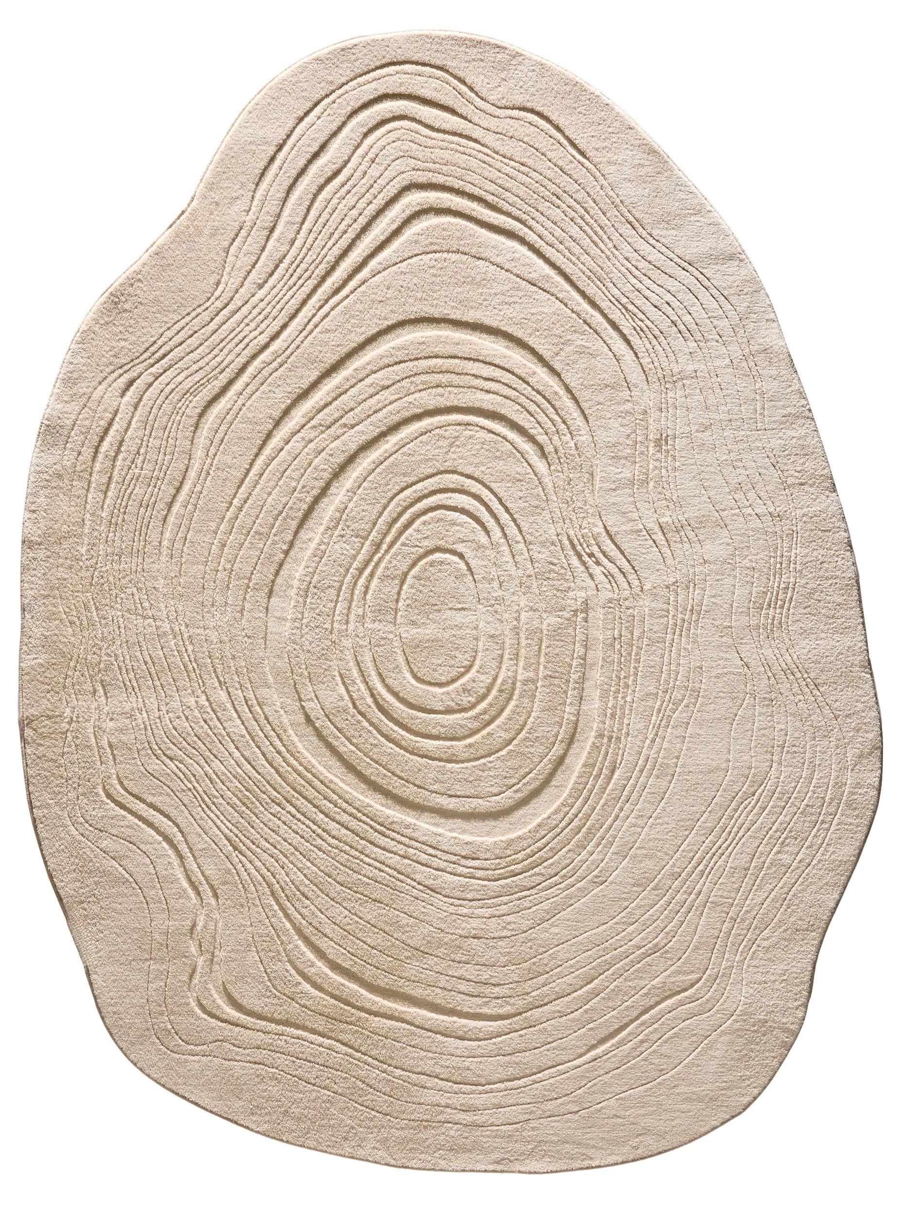 L’effet cocon de la silhouette ovale adoucit l’ensemble et invite à poser doucement le pied. Les courbes ramènent le mobilier vers le centre et créent un foyer de convivialité autour d’un canapé bas ou d’un fauteuil sculptural. La teinte beige module la lumière, révèle les nuances et apporte cette douceur scandinave qui laisse respirer la pièce sans l’alourdir.