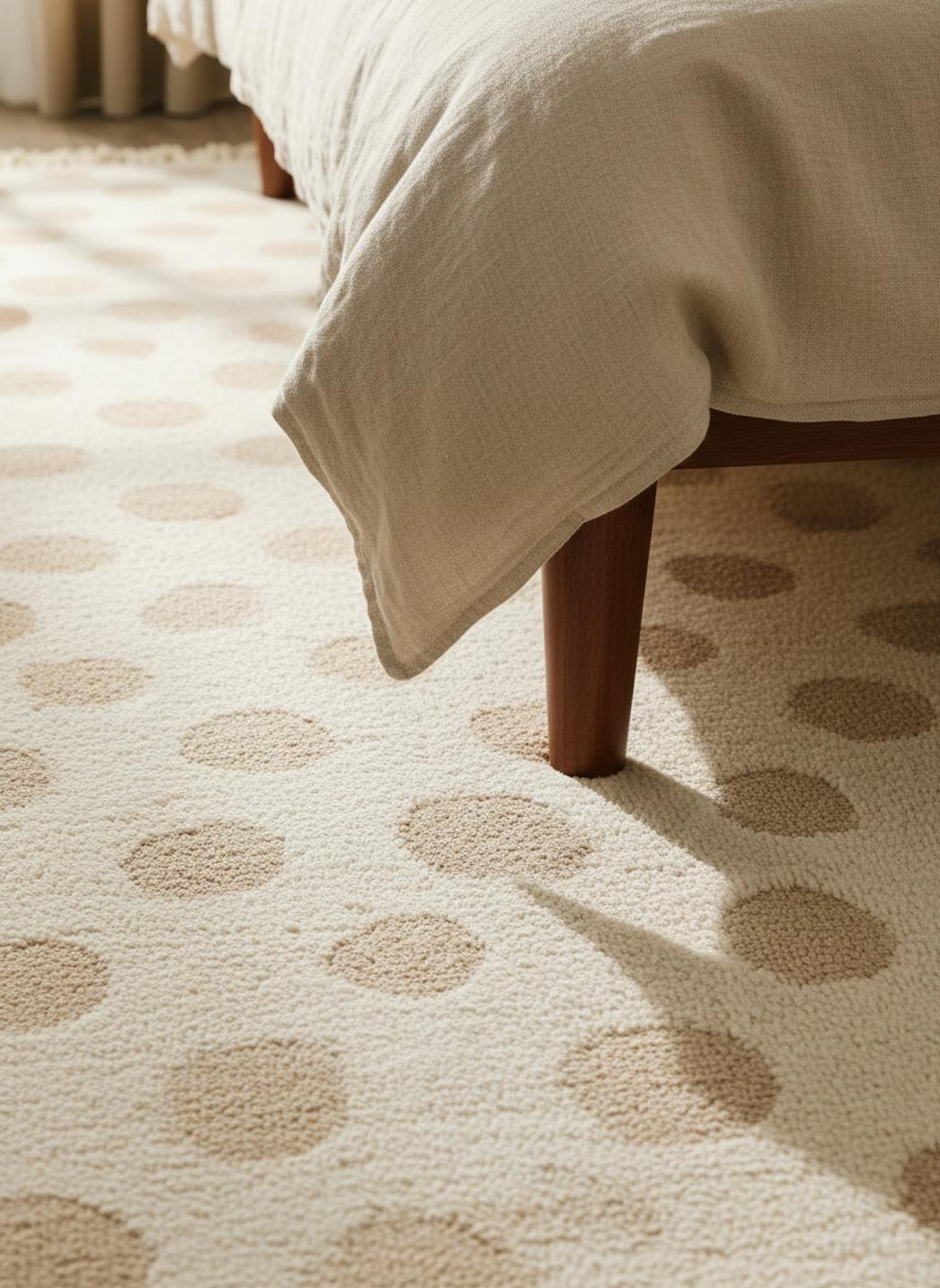 Les fibres synthétiques sont non-poreuses : la saleté reste en surface. Un coup d'aspirateur régulier suffit à le garder impeccable. Contrairement aux matières naturelles, il ne peluche pas.