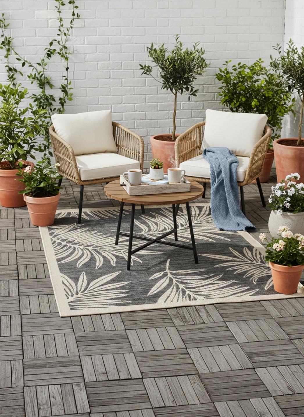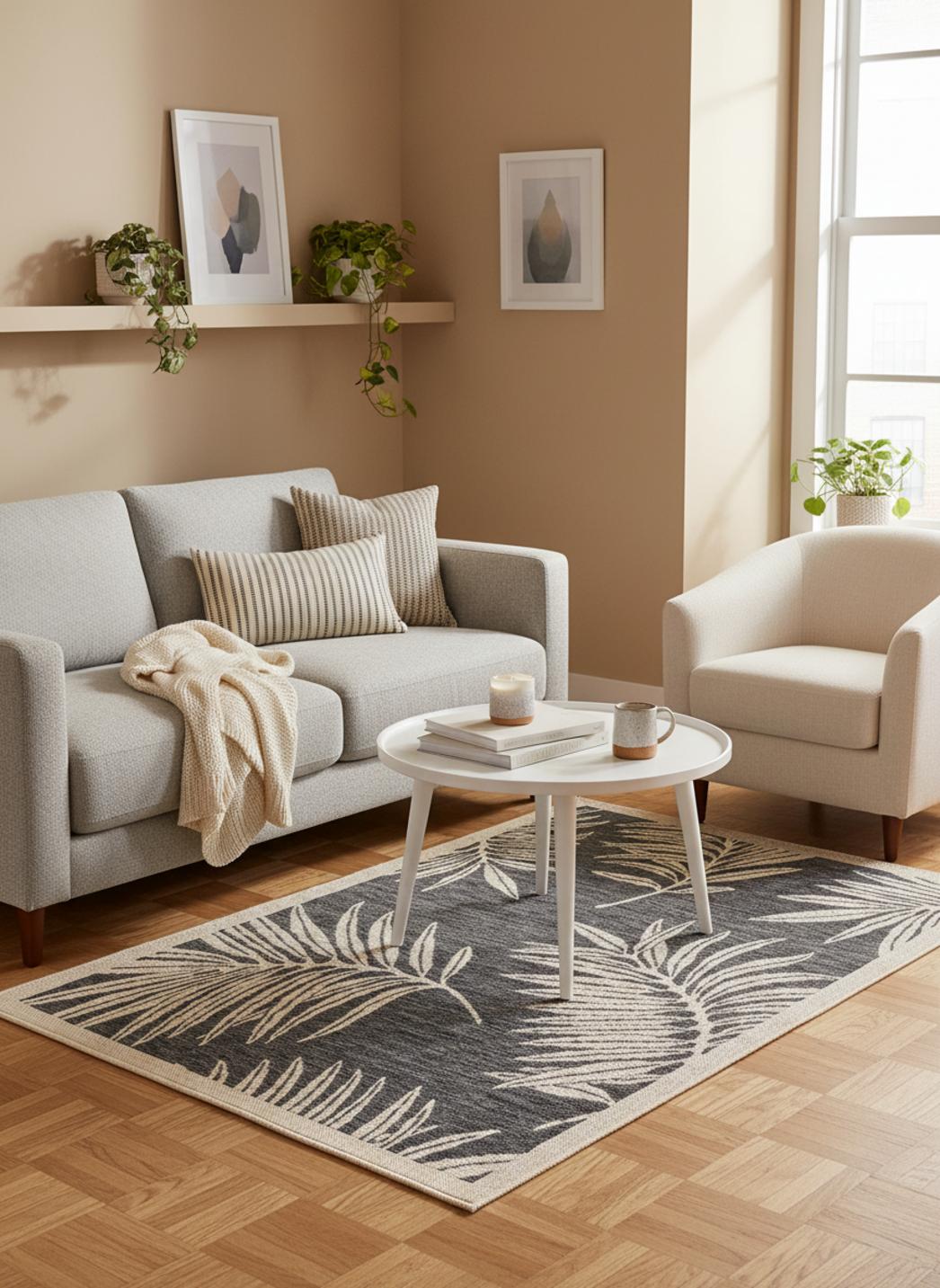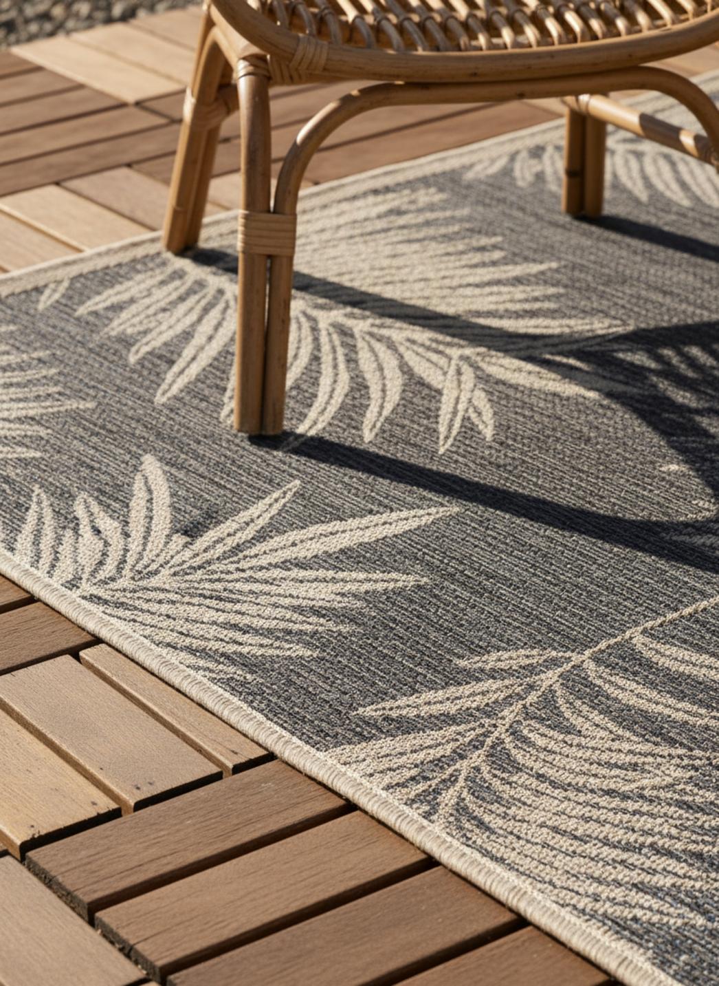 Dans un coin de terrasse ou sur un balcon tranquille, ce tapis moderne au motif à fleurs gris et beige apporte une touche de douceur graphique à l’espace extérieur. Ses fleurs délicatement dessinées s’épanouissent sur un fond apaisant, jouant sur l’équilibre entre la clarté du beige et la profondeur du gris. Ensemble, ces teintes créent une harmonie sobre et élégante, parfaite pour instaurer une ambiance sereine et raffinée. Par son format 100x150 cm, il s’intègre naturellement dans les espaces intimes : sous une petite table d’extérieur, au pied d’un fauteuil ou dans un recoin végétalisé. Les motifs floraux, stylisés et réguliers, insufflent une note de légèreté et de naturel sans rompre la sobriété du design. Ce tapis gris et beige dialogue subtilement avec les matières minérales et le mobilier en bois clair, diffusant une impression de calme et de cohérence. Il évoque un extérieur harmonieux, où la modernité se teinte de poésie et la nature s’exprime à travers le motif. Une pièce délicate, pensée pour adoucir l’atmosphère et sublimer la simplicité des instants à ciel ouvert.