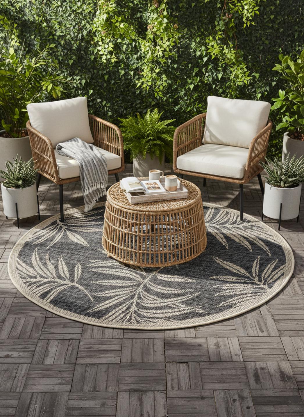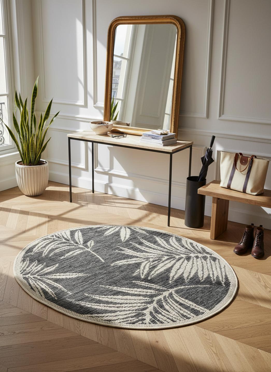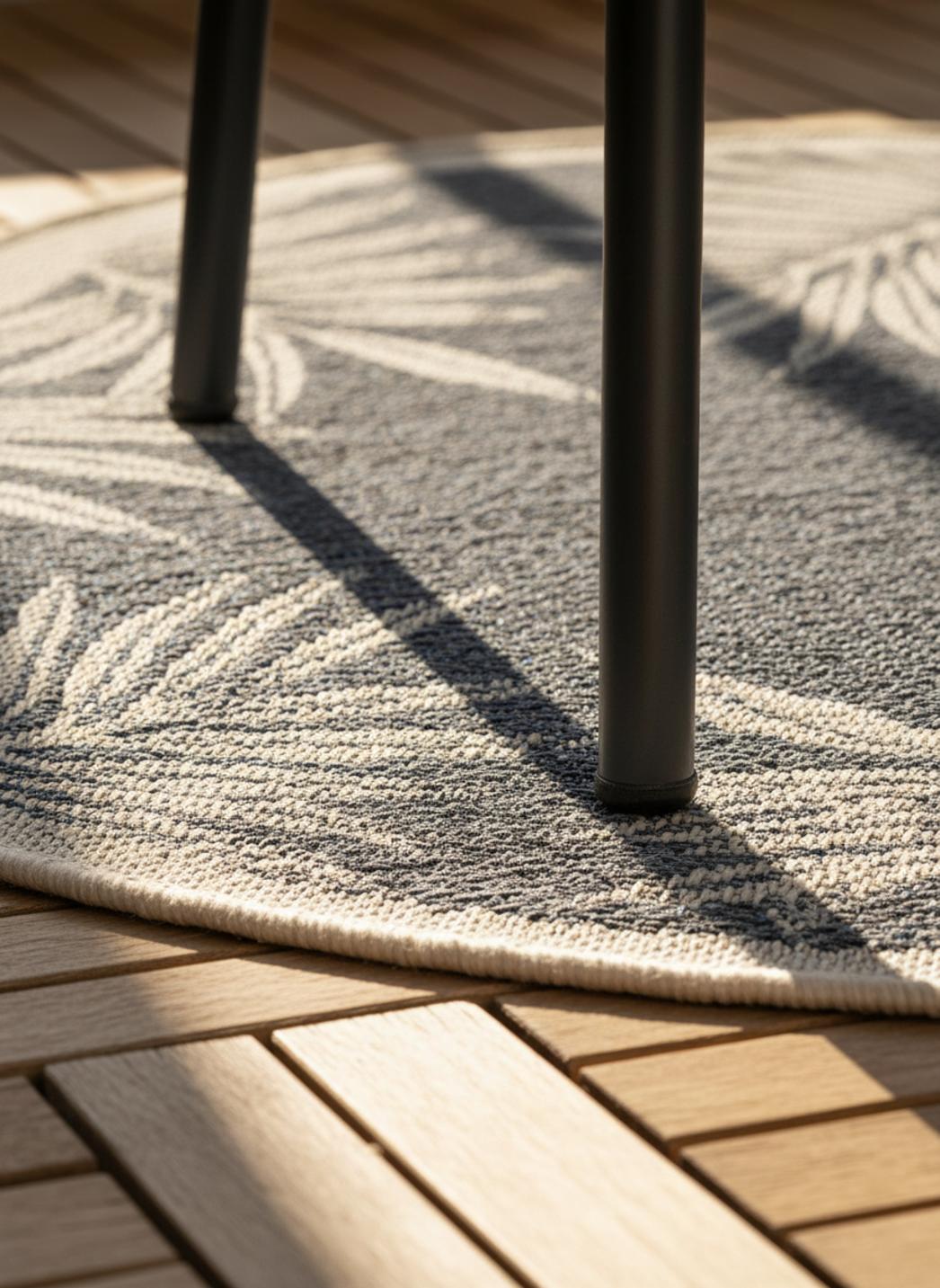 Comme une rosace posée au sol, ce tapis moderne rond orné d’un motif à fleurs déploie une élégance douce et intemporelle. Ses teintes de gris et de beige s’entrelacent avec subtilité, créant une harmonie délicate qui adoucit les espaces extérieurs tout en leur donnant du relief. Dans son diamètre de 130 cm, il s’intègre parfaitement sous une petite table, au centre d’un salon de terrasse ou dans un coin détente ensoleillé. Le gris, à la fois neutre et raffiné, équilibre la chaleur du beige pour une atmosphère sereine et contemporaine. Les motifs floraux, stylisés avec finesse, rappellent la nature sans jamais l’imiter, comme une évocation poétique du végétal au cœur du design. Ce tapis rond invite à la détente et à la convivialité, transformant le sol en un écrin visuel où la lumière joue avec les contours. Il capture l’esprit d’un été paisible, celui où la beauté se niche dans la simplicité et la douceur des formes.