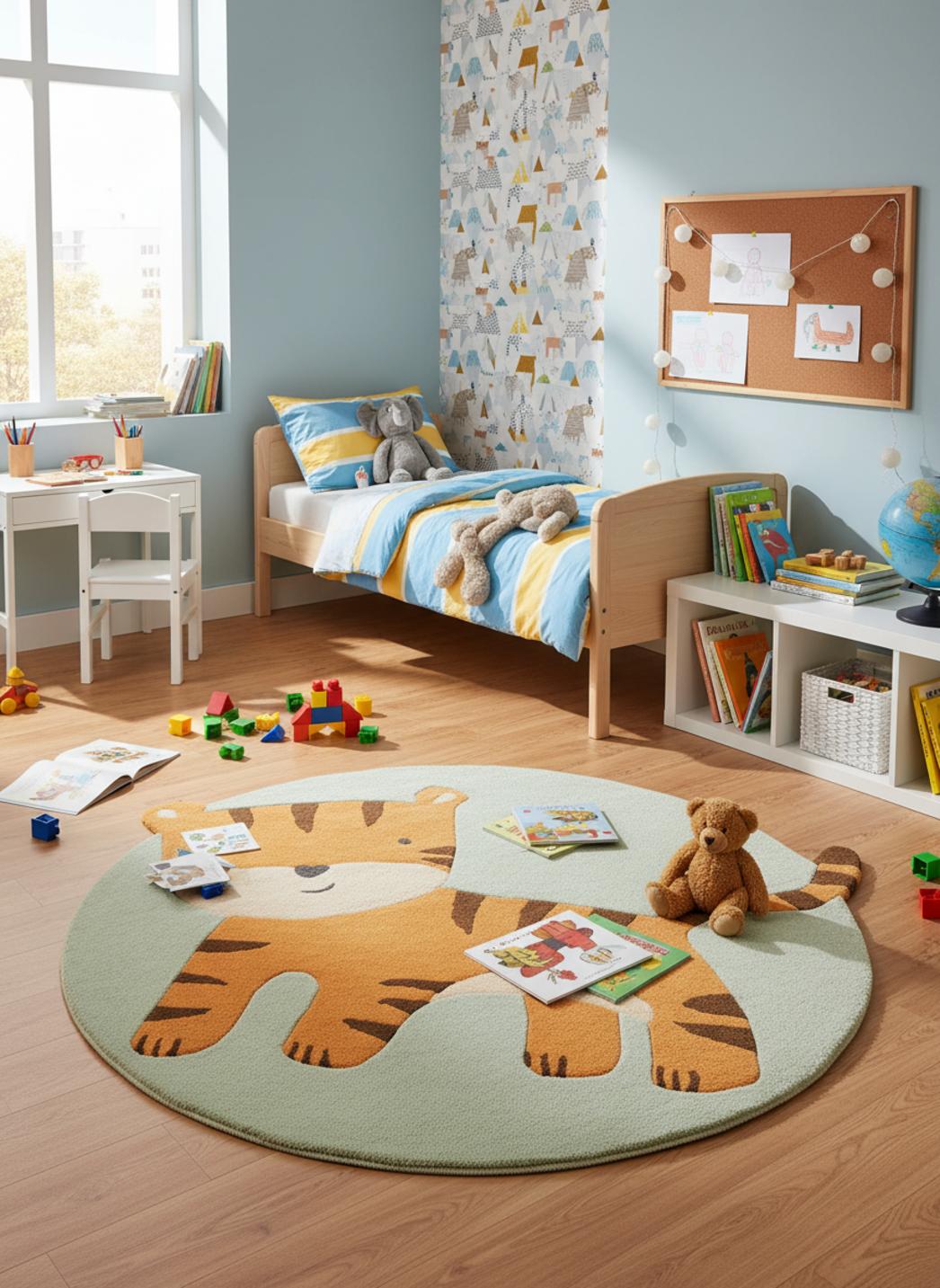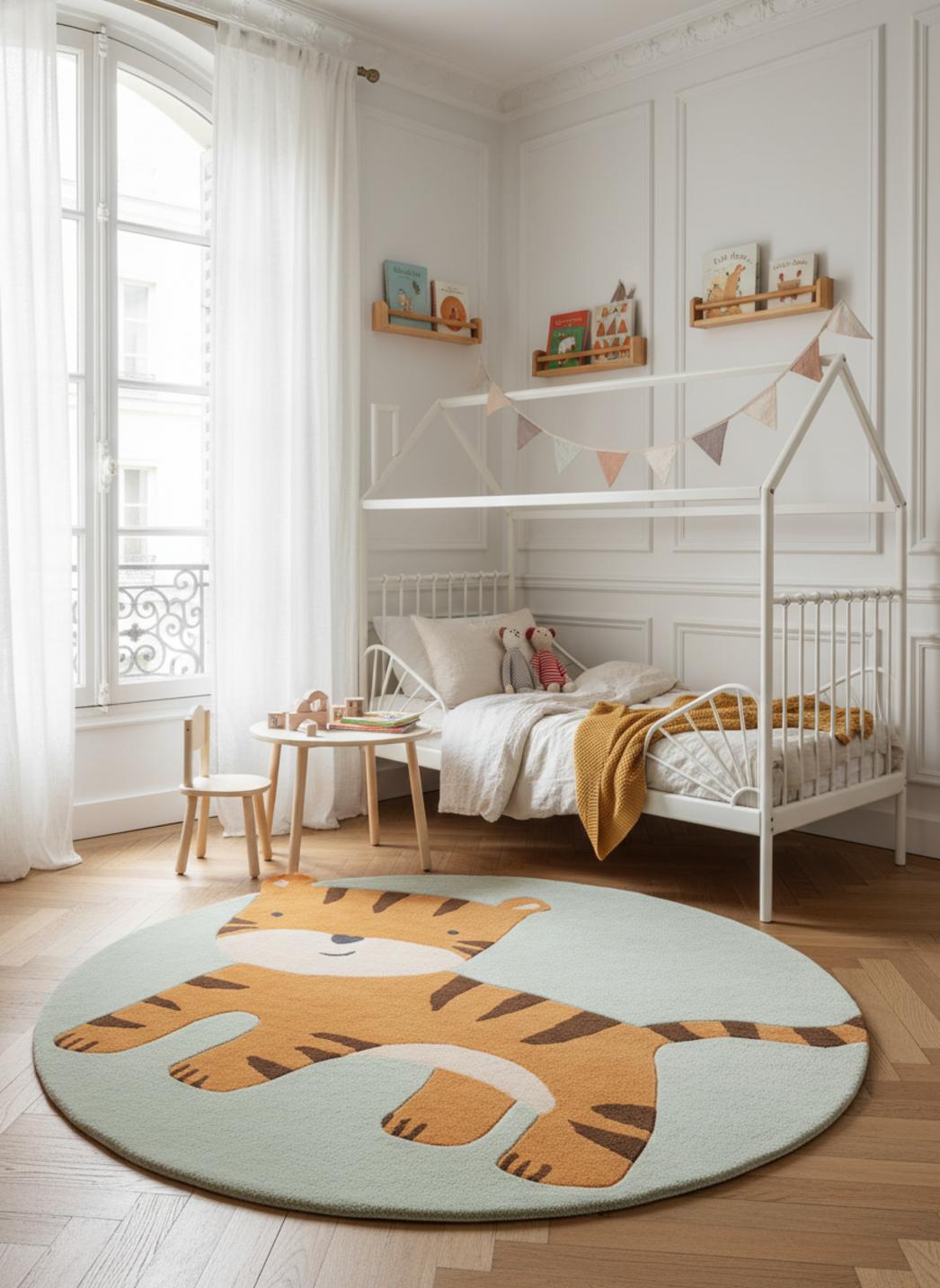 Imaginez un coin de chambre où chaque lecture devient une aventure et chaque sieste, un petit voyage : posé au milieu, ce tapis offre une invitation au jeu et au calme, un cocon qui appelle à s'asseoir pour feuilleter un livre ou pour improviser une construction de blocs avant le coucher.