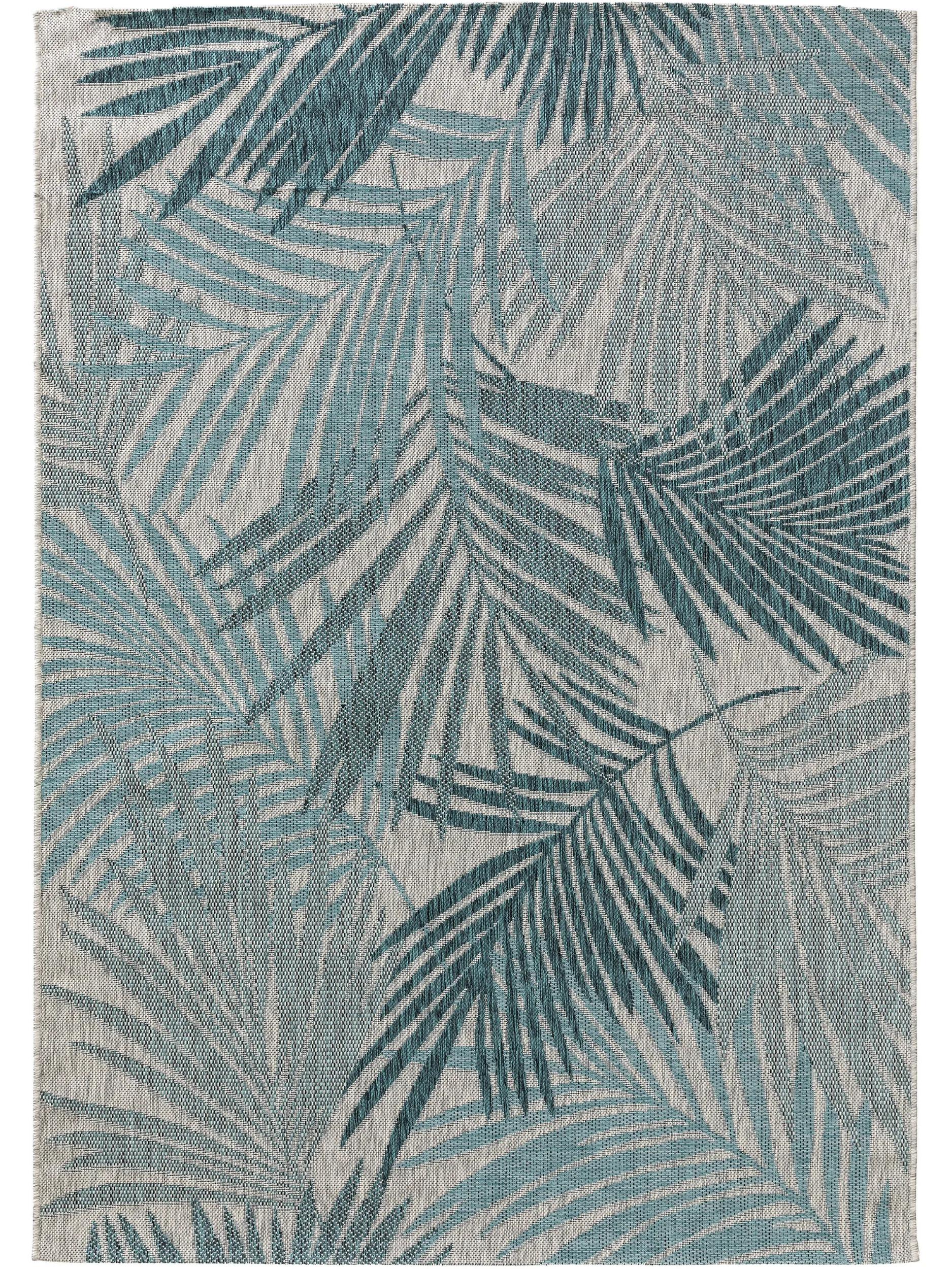 Tapis moderne motif feuille bleu et gris d'intérieur et d'extérieur 240x340 cm