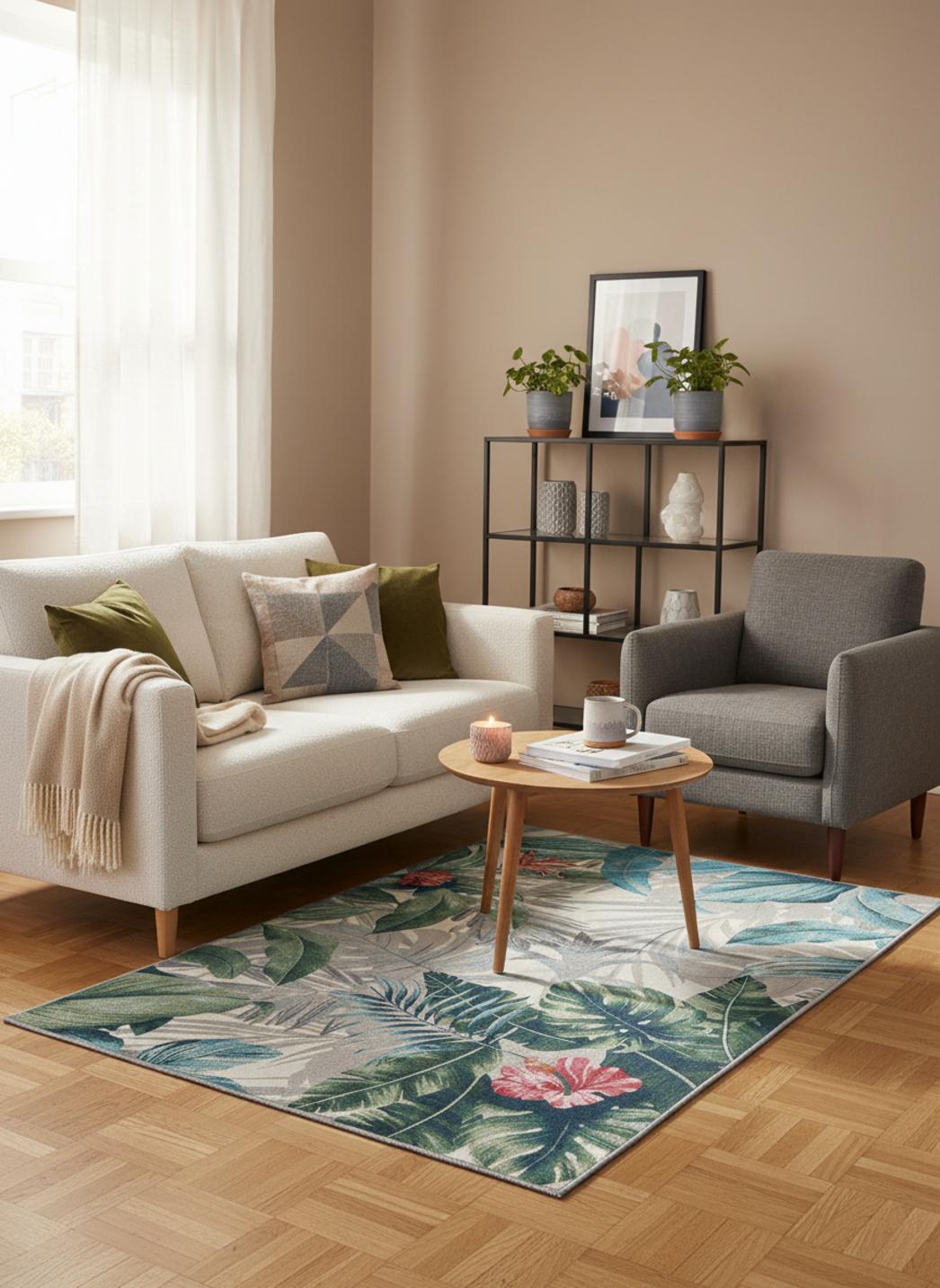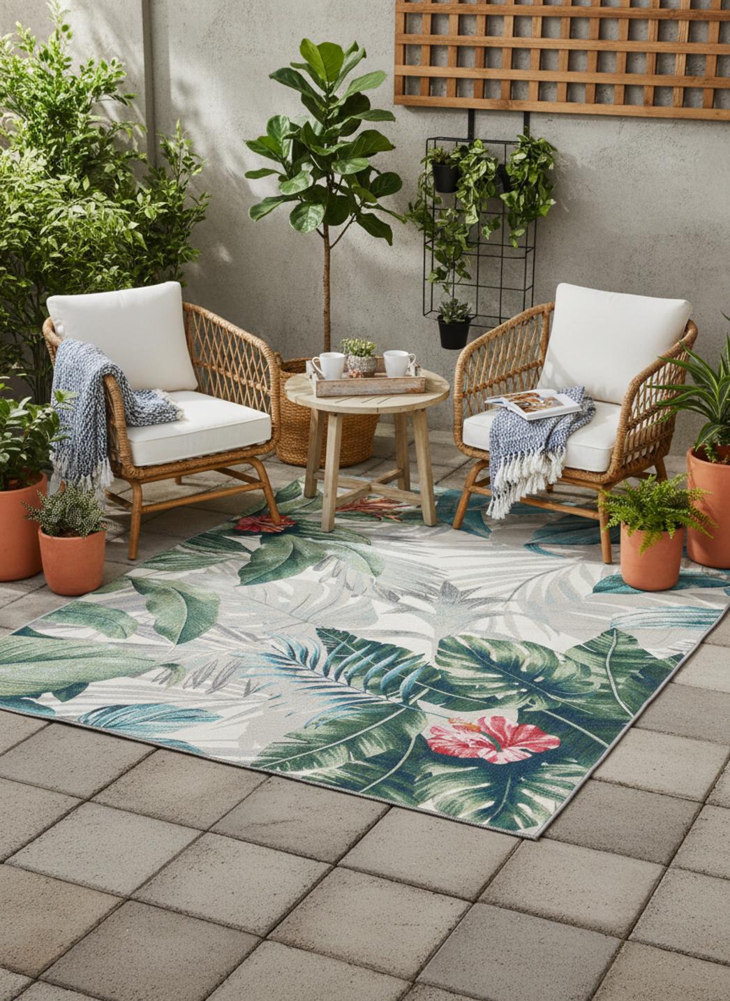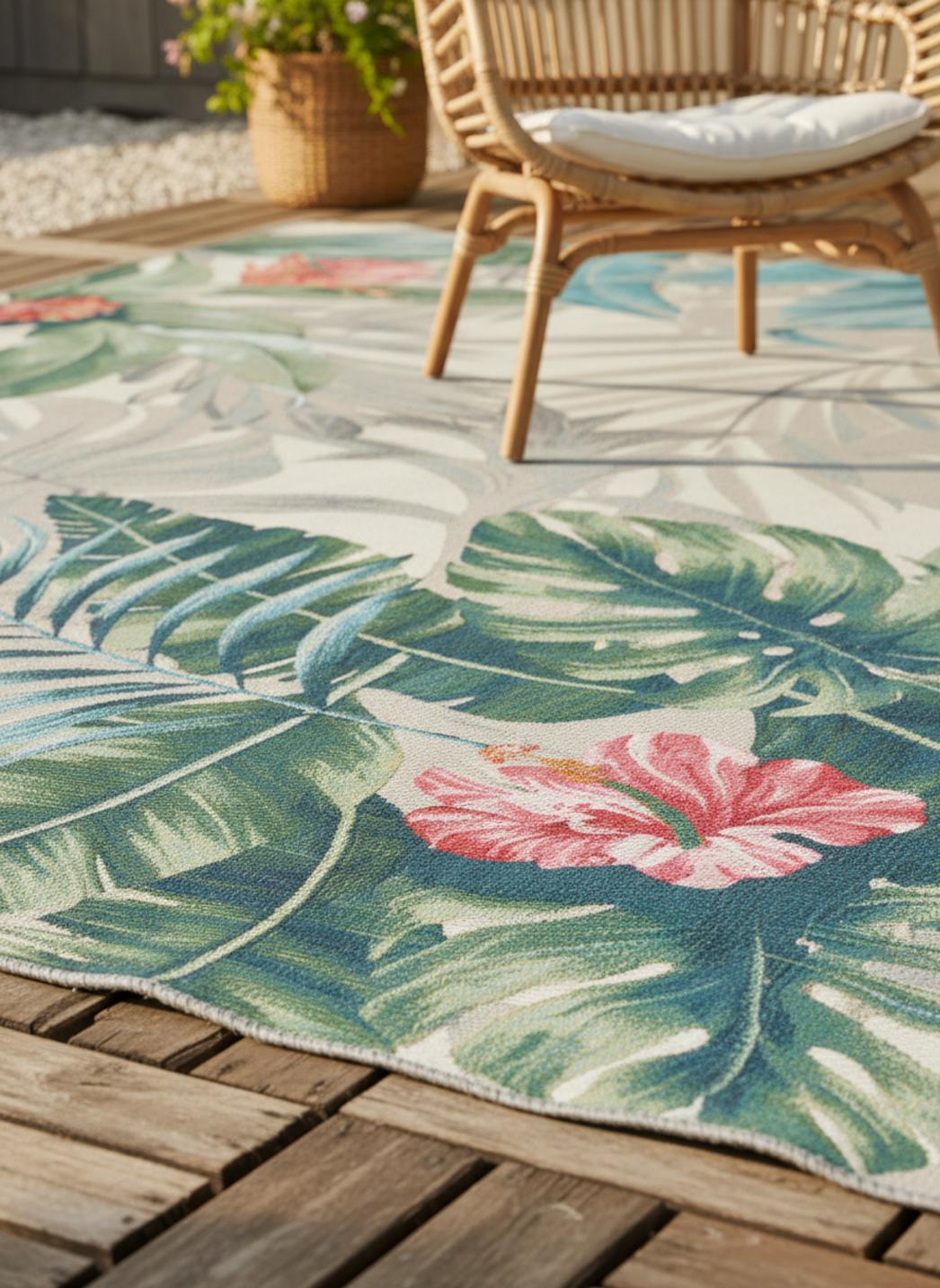 Véritable souffle de nature et de couleur, ce tapis au style moderne séduit par son motif feuille aux accents multicolores. Conçu pour illuminer les espaces extérieurs, il apporte une fraîcheur végétale et un dynamisme visuel unique. Ses teintes vives évoquent les jardins d’été, les feuillages luxuriants et les terrasses fleuries, transformant instantanément l’ambiance d’un balcon ou d’un coin détente. Avec ses dimensions de 80x165 cm, il s’adapte parfaitement à un espace réduit, créant un cadre accueillant pour un fauteuil, une petite table basse ou un passage extérieur. Son graphisme contemporain joue sur les contrastes et les nuances, mariant subtilement modernité et esprit naturel. Ce tapis devient un véritable lien entre architecture et végétation, apportant à la terrasse une touche artistique et vivante. On l’imagine sous un ciel clair, entouré de plantes en pot, où ses motifs se fondent dans le décor tout en lui donnant plus de profondeur et de gaieté. Idéal pour insuffler une personnalité joyeuse et raffinée à l’extérieur, il incarne l’harmonie parfaite entre design et nature, entre éclat et sérénité.