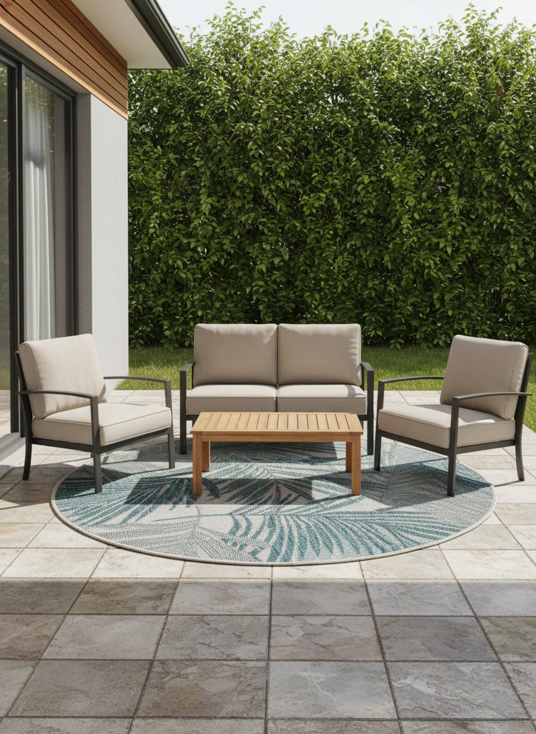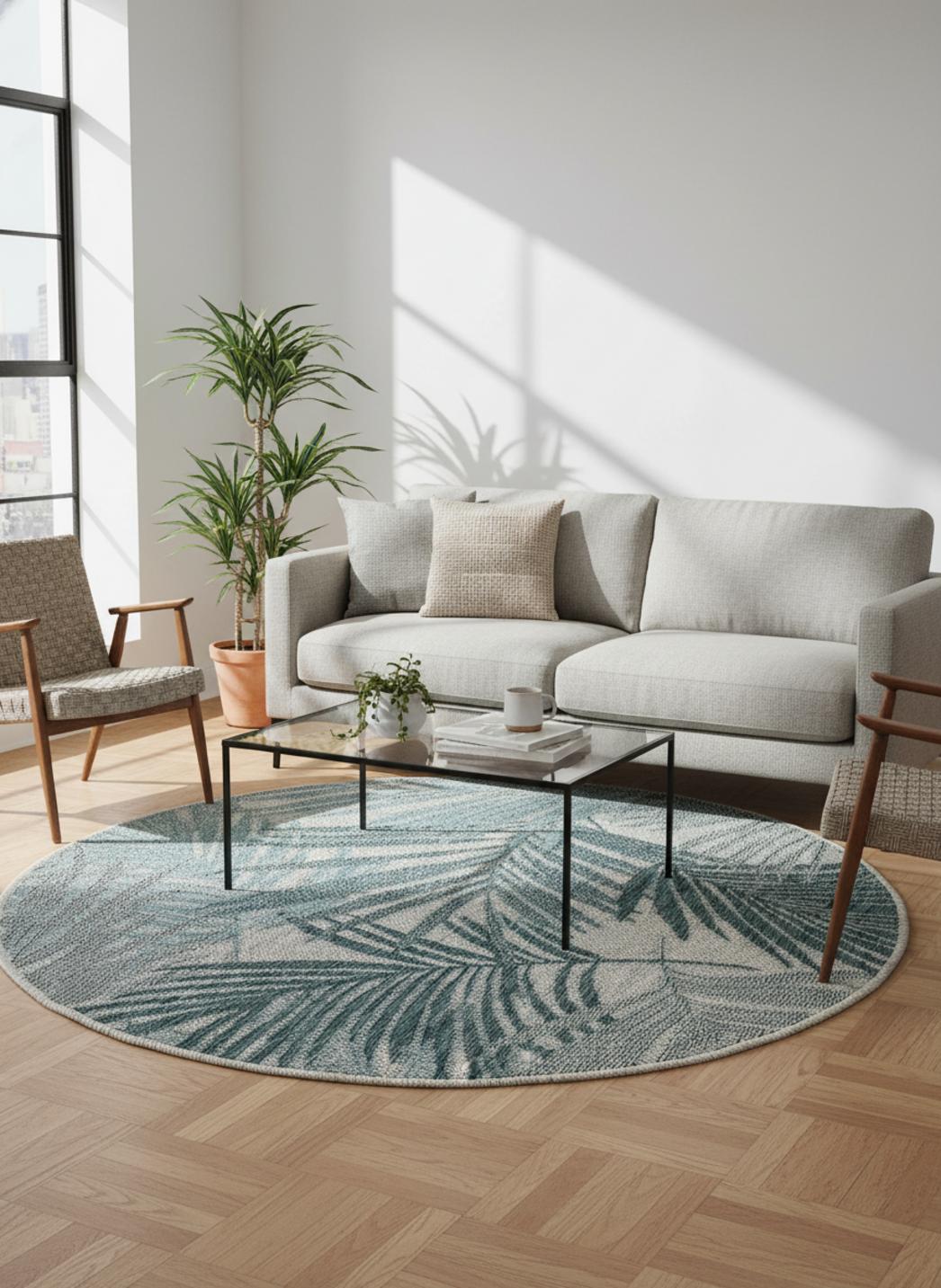 Conçu pour la vie moderne, ce tapis allie esthétique et haute résistance. La composition de votre Tapis moderne motif feuille rond bleu et gris d'intérieur et d'extérieur 150 cm de diamètre a été pensée pour résister à l'usure quotidienne tout en conservant l'éclat de ses couleurs durablement.
