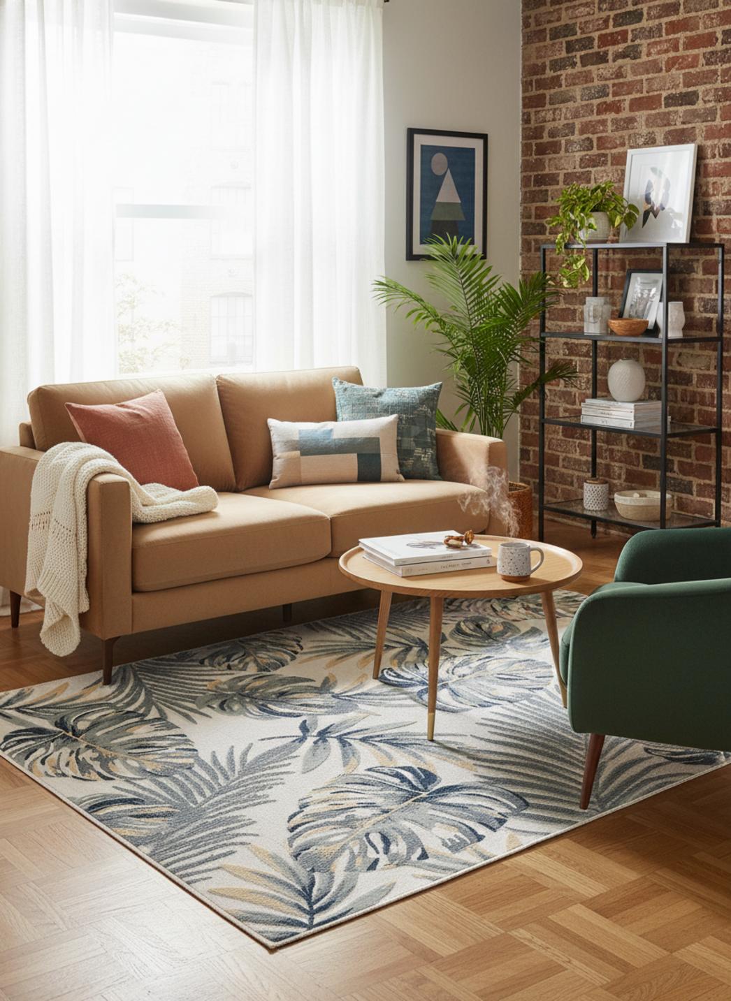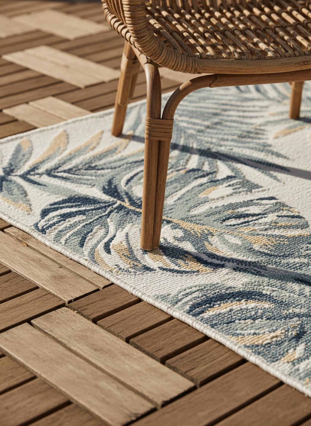 Le charme discret de ce tapis moderne se révèle dans le dialogue apaisant du gris et du bleu, où le motif floral de palmier esquisse une nature stylisée et contemporaine. En format 80x150 cm, il se glisse aisément sur un balcon, une entrée ou un petit coin détente en extérieur, apportant une touche de fraîcheur et d’élégance sans en faire trop. Ses nuances douces rappellent les rivages apaisés, les brises légères et les reflets de l’eau sous un ciel clair. Chaque détail du dessin floral apporte rythme et profondeur, sans jamais rompre la sérénité de l’ensemble. Par sa taille compacte, il structure l’espace avec finesse, créant une transition subtile entre le mobilier et le sol. Sur un carrelage clair ou un plancher en bois, ses teintes grises et bleutées diffusent une lumière délicate et naturelle. Ce tapis d’extérieur s’impose comme une signature discrète, entre sophistication urbaine et douceur végétale, idéal pour insuffler une atmosphère paisible et contemporaine aux petits espaces ouverts.