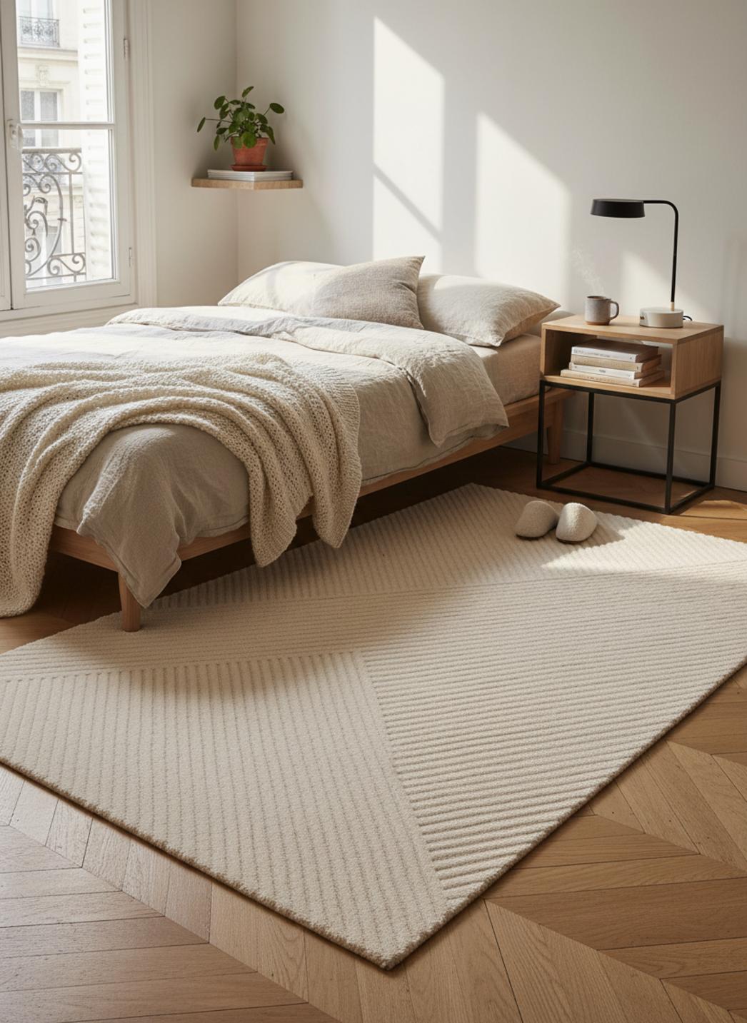 Imaginez ce tapis comme un point d’équilibre dans une pièce épurée, capable d’instaurer une ambiance à la fois contemporaine et chaleureuse. Le dessin moderne s’intègre aisément à un intérieur scandinave ou minimaliste, apportant un supplément d’âme sans surcharge. Il transforme une chambre en un cocon rassurant, une entrée en un seuil structuré ou un bureau en une scène de travail sereine.