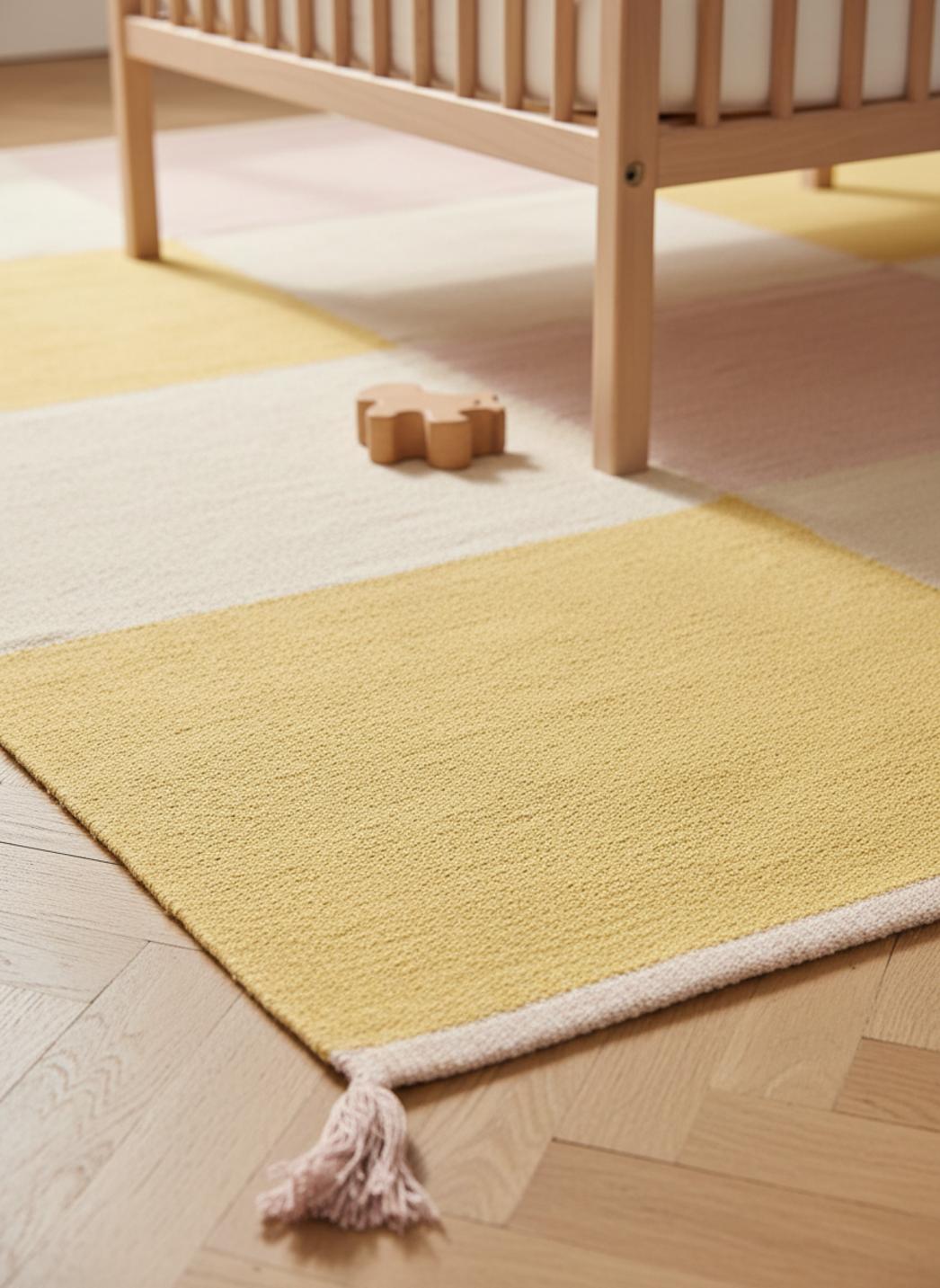 Imaginez un instant la chambre baignée d'une lumière douce où votre petit pose ses jouets, s'allonge pour écouter une histoire et s'endort après une sieste improvisée : les nuances rose et jaune du motif apportent une chaleur réconfortante qui invite au calme et à l'éveil des sens, comme un cocon coloré sous les pas et les rires.